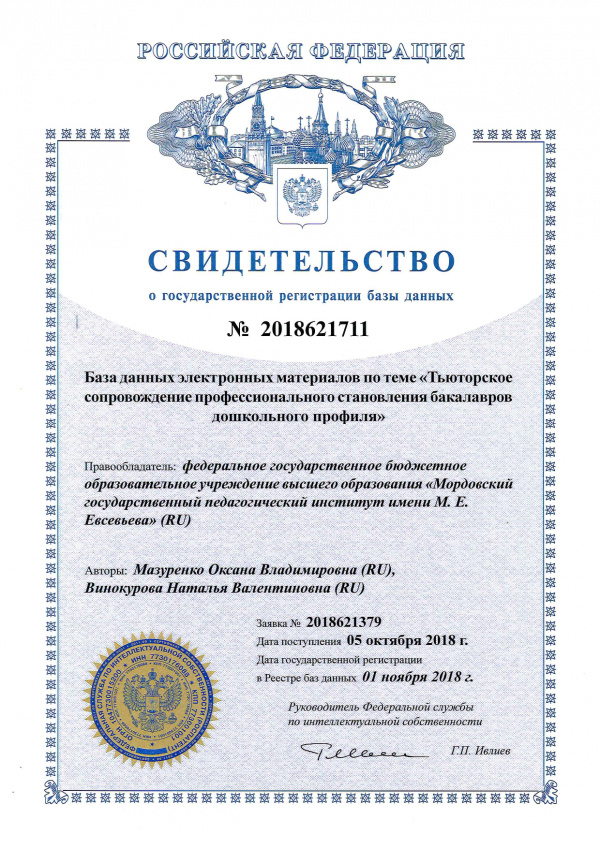 Патентообладатель: Федеральное государственное бюджетное образовательное учреждение высшего образования "Мордовский государственный педагогический институт имени М.Е. Евсевьева"