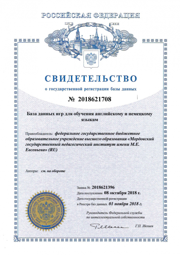 База данных игр для обучения английскому и немецкому языкам Вишленкова С.Г.