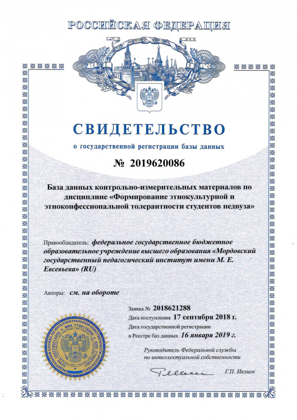 Патентообладатель: Федеральное государственное бюджетное образовательное учреждение высшего образования "Мордовский государственный педагогический институт имени М.Е. Евсевьева"