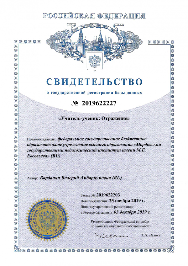 Патентообладатель: Федеральное государственное бюджетное образовательное учреждение высшего образования "Мордовский государственный педагогический институт имени М.Е. Евсевьева"