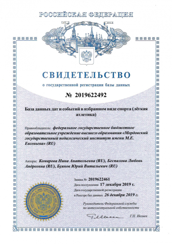 База данных дат и событий в избранном виде спорта (легкая атлетика) Комарова Н.А.