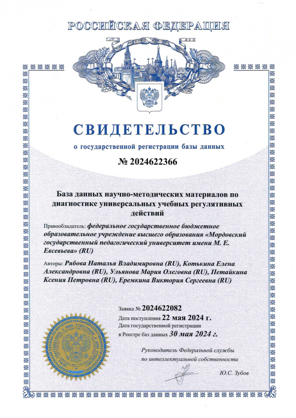 Патентообладатель: Федеральное государственное бюджетное образовательное учреждение высшего образования "Мордовский государственный педагогический институт имени М.Е. Евсевьева"