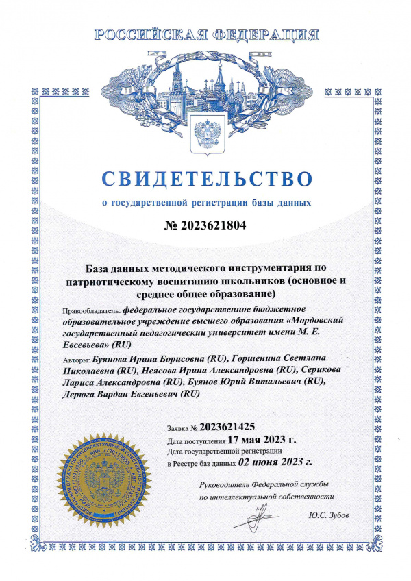 Патентообладатель: Федеральное государственное бюджетное образовательное учреждение высшего образования "Мордовский государственный педагогический институт имени М.Е. Евсевьева"