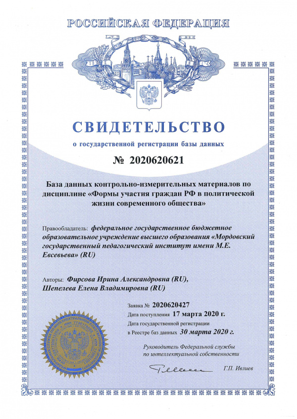 Патентообладатель: Федеральное государственное бюджетное образовательное учреждение высшего образования "Мордовский государственный педагогический институт имени М.Е. Евсевьева"