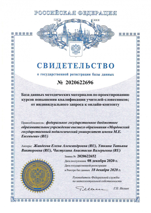 База данных методических материалов по проектированию курсов повышения квалификации учителей-словесников; от индивидуального запроса к онлайн-контенту Жиндеева Е.А.