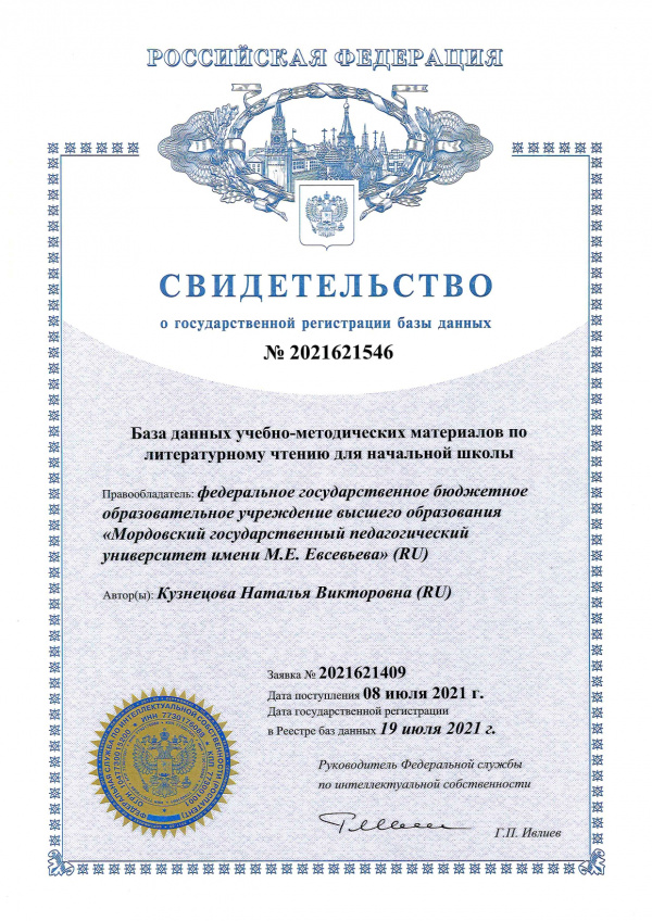 Патентообладатель: Федеральное государственное бюджетное образовательное учреждение высшего образования "Мордовский государственный педагогический институт имени М.Е. Евсевьева"