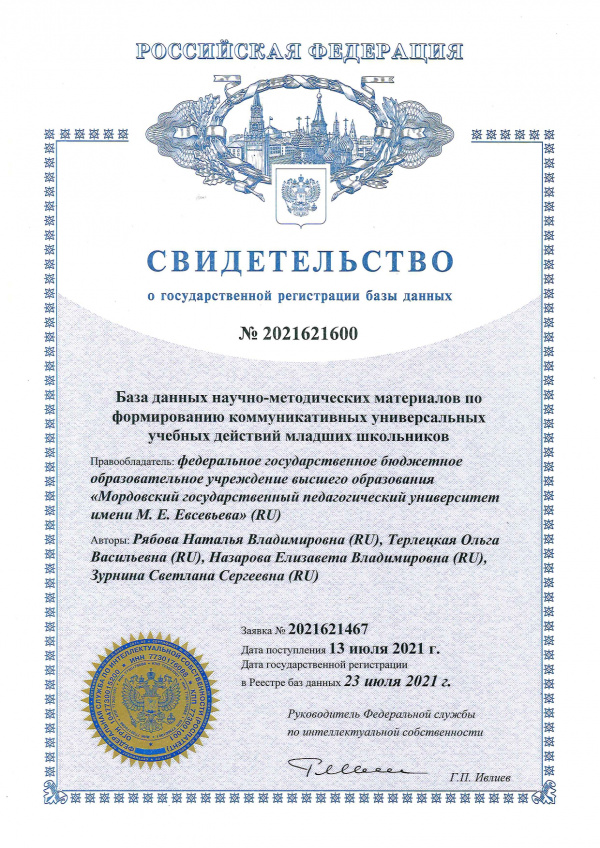 Патентообладатель: Федеральное государственное бюджетное образовательное учреждение высшего образования "Мордовский государственный педагогический институт имени М.Е. Евсевьева"