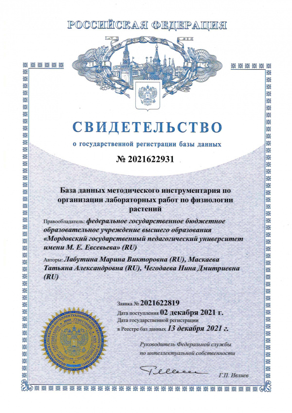 Патентообладатель: Федеральное государственное бюджетное образовательное учреждение высшего образования "Мордовский государственный педагогический институт имени М.Е. Евсевьева"