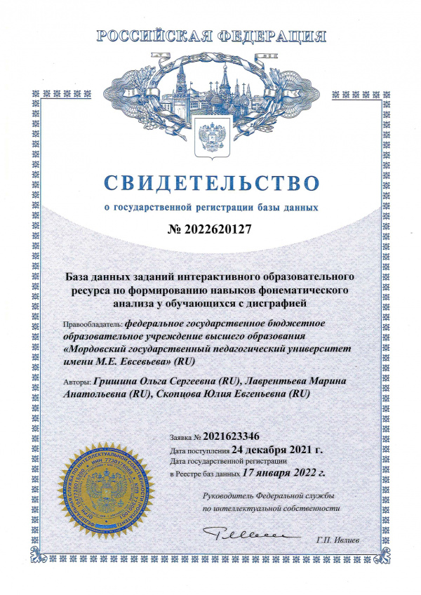 Патентообладатель: Федеральное государственное бюджетное образовательное учреждение высшего образования "Мордовский государственный педагогический институт имени М.Е. Евсевьева"