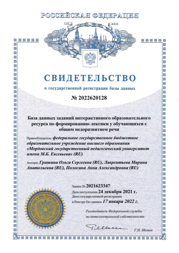 База данных заданий интерактивного образовательного ресурса по формированию лексики у обучающихся с общим недоразвитием речи Гришина О.С.