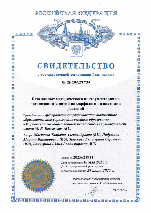 База данных методического инструментария по организации занятий по морфологии и анатомии растений