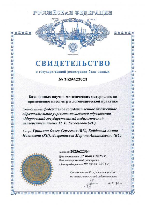Патентообладатель: Федеральное государственное бюджетное образовательное учреждение высшего образования "Мордовский государственный педагогический институт имени М.Е. Евсевьева"