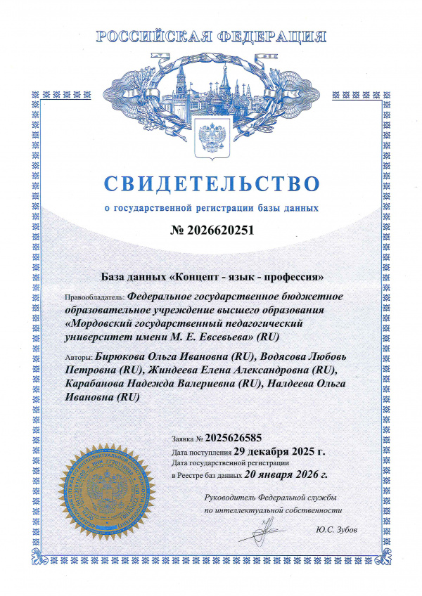 Патентообладатель: Федеральное государственное бюджетное образовательное учреждение высшего образования "Мордовский государственный педагогический институт имени М.Е. Евсевьева"