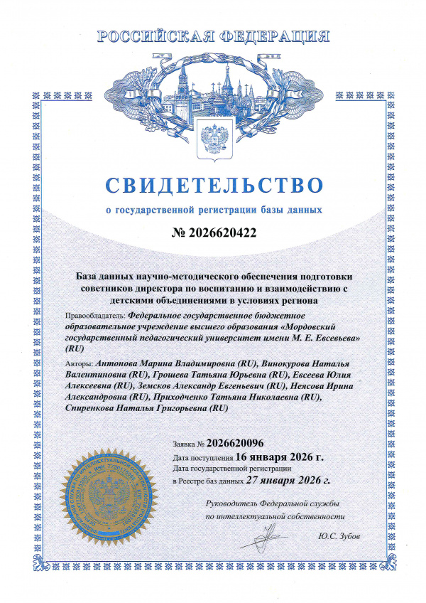 Патентообладатель: Федеральное государственное бюджетное образовательное учреждение высшего образования "Мордовский государственный педагогический институт имени М.Е. Евсевьева"