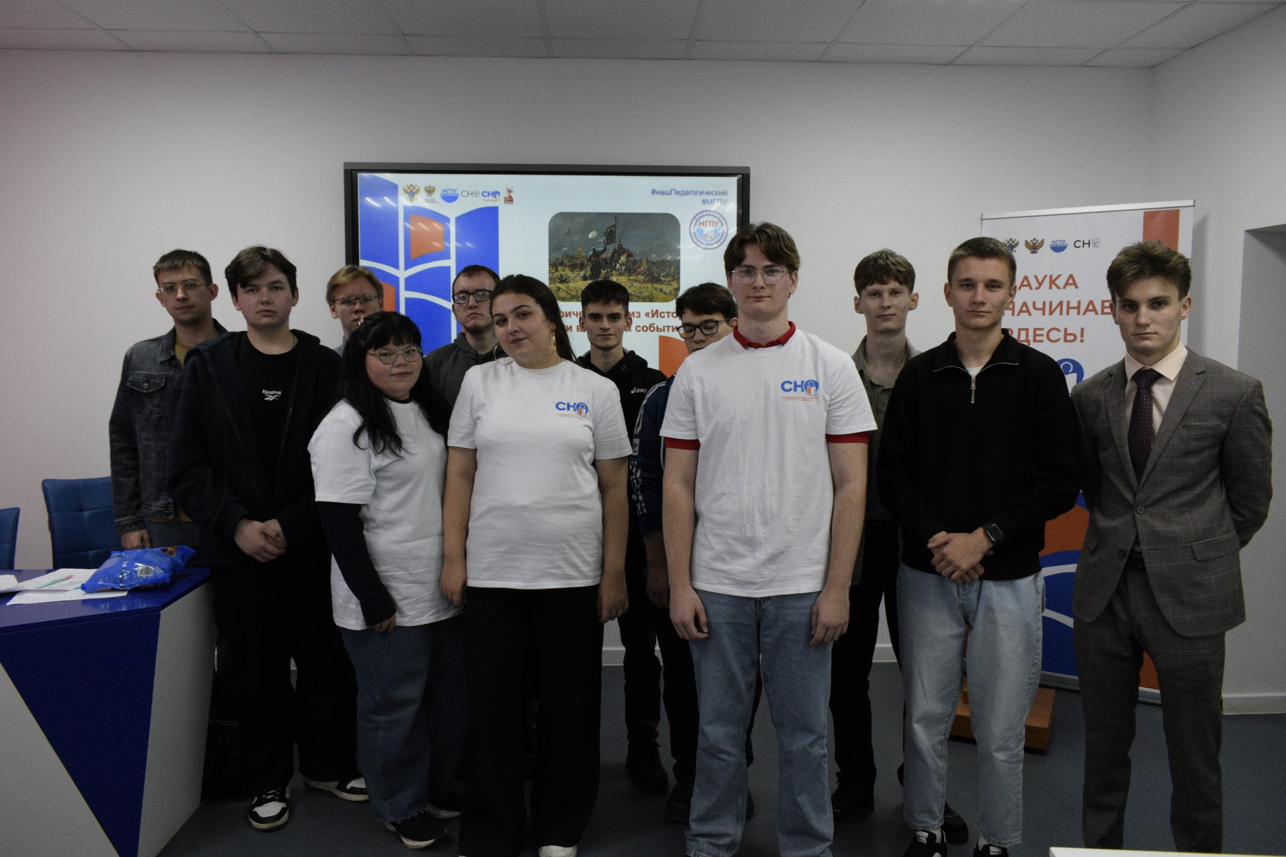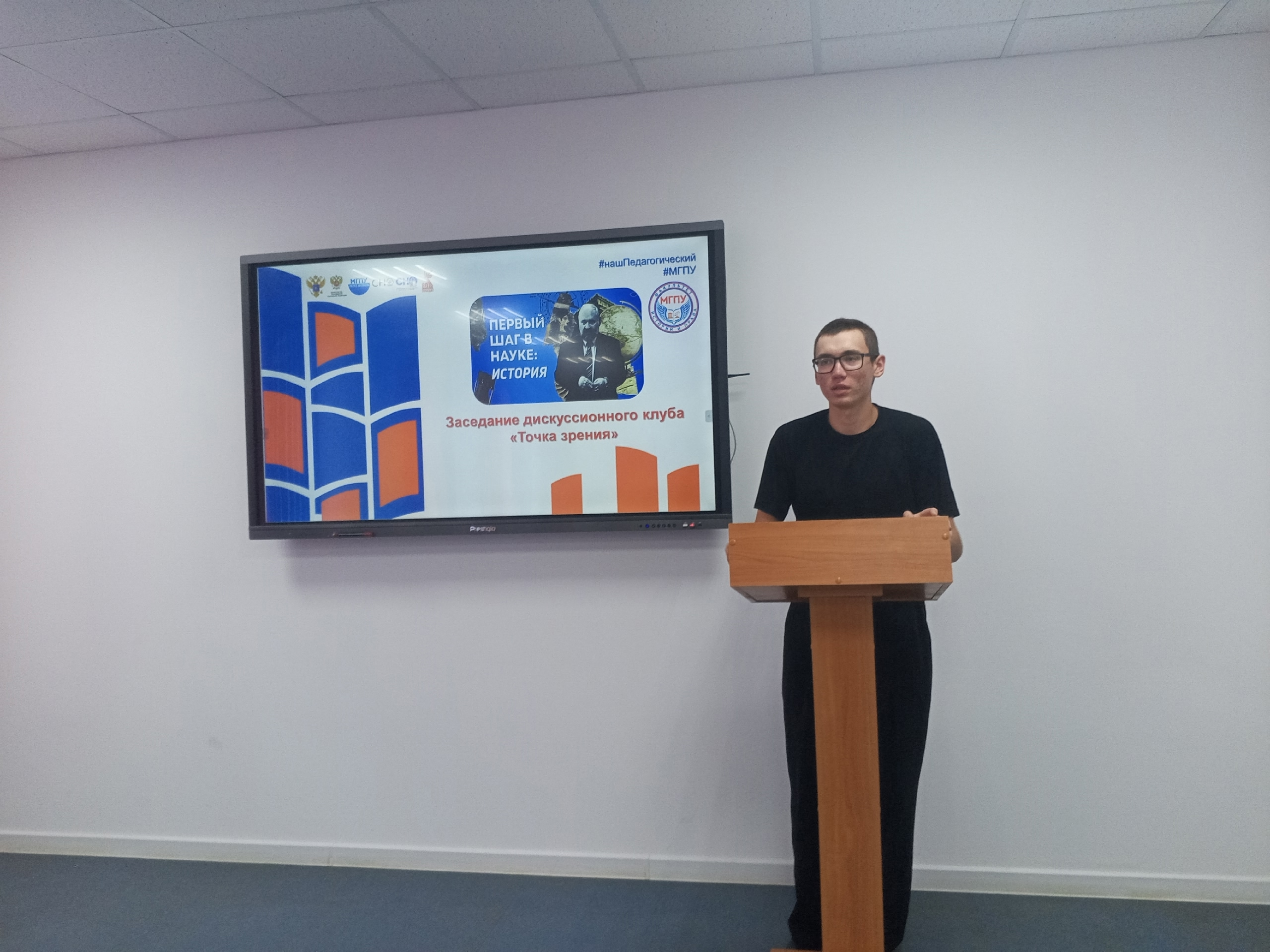 Далее первокурсников ждало заседание дискуссионного клуба «Точка зрения» на тему «Первый шаг в науке: история» от руководителя дискуссионного клуба Шипилина Артема Сергеевича. В рамках заседания студенты обсудили роль истории как науки, определили ее роль в жизни студента, а также рассмотрели вопросы о месте истории в системе современных наук.