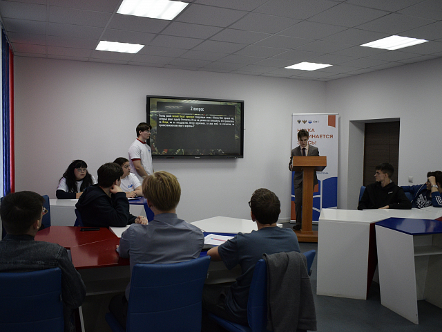 На историческом квизе «История России в лицах и событиях» первокурсники с помощью Ломакина Александра и Крамина Сергея актуализировали знания по истории России. Ребятам необходимо было пройти два раунда игры с тремя заданиями в каждом, разного рода сложности. Результатом выявление самых активных и любознательных студентов, а также награждение команды-победителя дипломами.