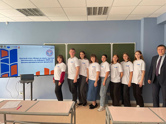 Круглый стол «Фокус на науку: научная деятельность на кафедрах ФМФ» позволил ребятам в неформальной обстановке пообщаться с заведующими кафедр физико-математического факультета Ульяновой И. В. и Голяевым С. С., узнать о ключевых направлениях научных исследований факультета; о возможностях участия студентов в конкурсах и грантах. К. С. Лапин, молодой доктор физико-математических наук, доцент кафедры математики, экономики и методик обучения, представил вдохновляющий рассказ о своем пути – от школьника до доктора физико-математических наук. У студентов была возможность задать все интересующие вопросы преподавателям.