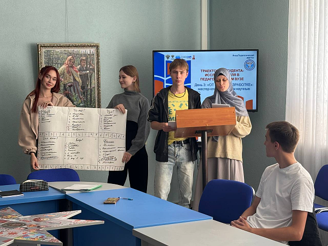 На мастер-классе «Создаем научные проекты!» первокурсники с помощью Пузиной Алины, Тришиной Анны и Амировой Эвелины учились превращать замыслы в полноценные исследовательские идеи. Результатом интерактивного занятия стали мини-презентации проектов о языке, литературе и научно-популярной деятельности.
