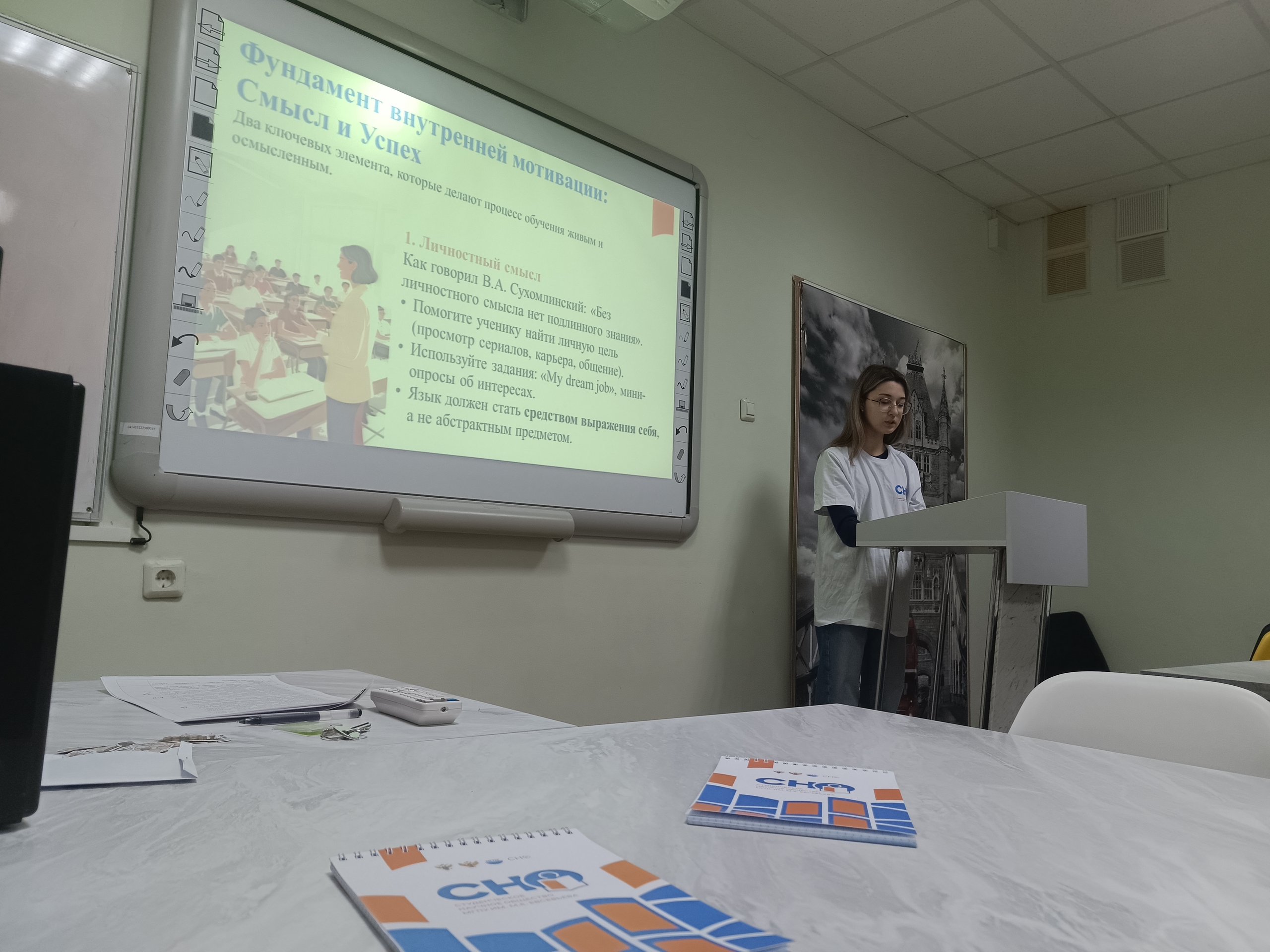 На мероприятии студенты делились актуальными идеями и исследованиями о том, как повысить мотивацию к изучению иностранных языков. Участники обсуждали разные подходы: психологические стратегии, мотивационные инструменты, методы повышения интереса и вовлеченности.