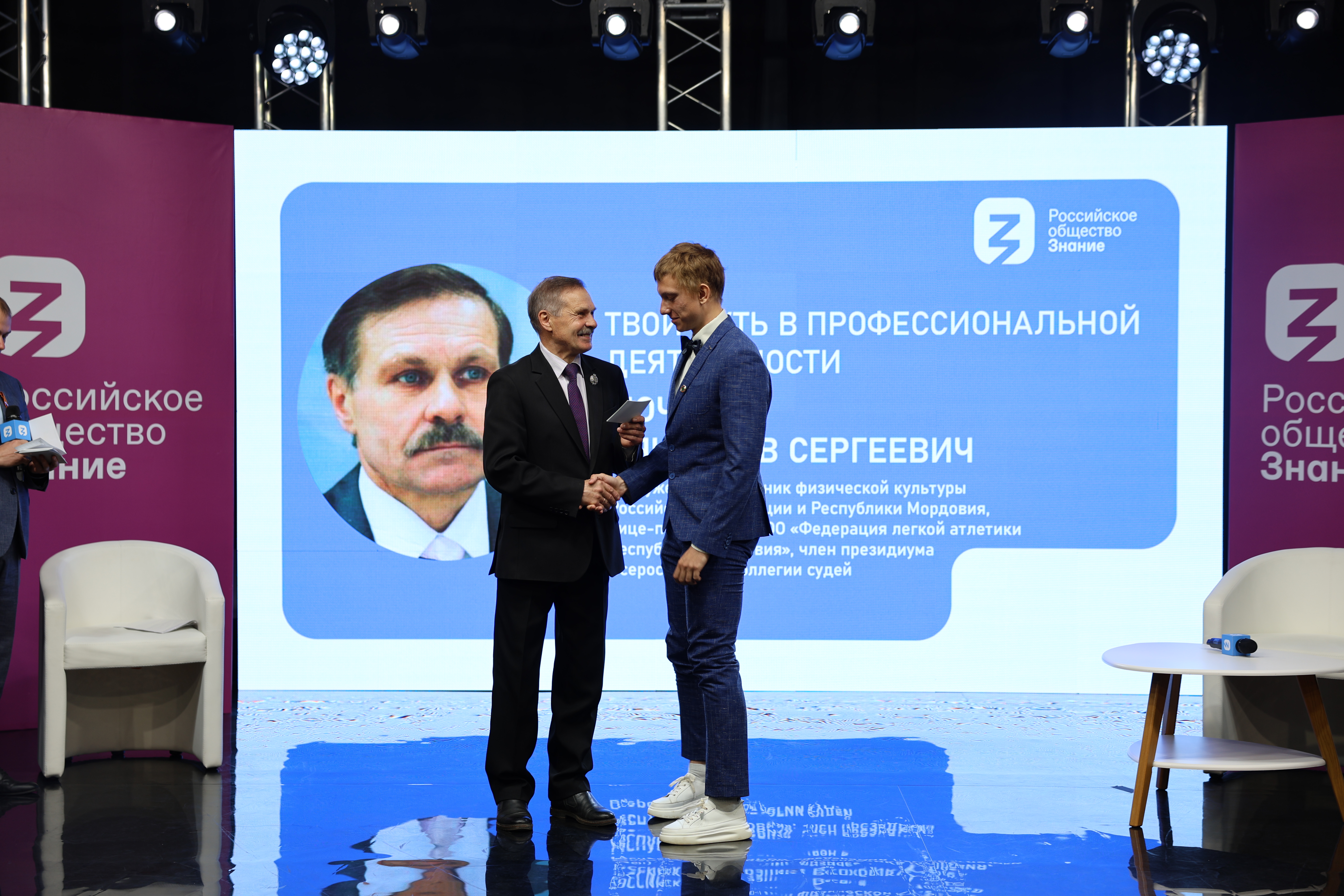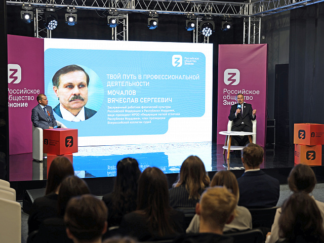 8 мая 2024 года студенты факультета физической культуры во главе с деканам факультета Сергеем Васильевичем Бакулиным встретились с заслуженным работником физической культуры Российской Федерации и Республики Мордовия, вице-президентом МРОО «Федерация легкой атлетики Республики Мордовия», членом президиума Всероссийской коллегии судей Вячеславом Сергеевичем Мочаловым на региональной площадке Российского общества «Знание».