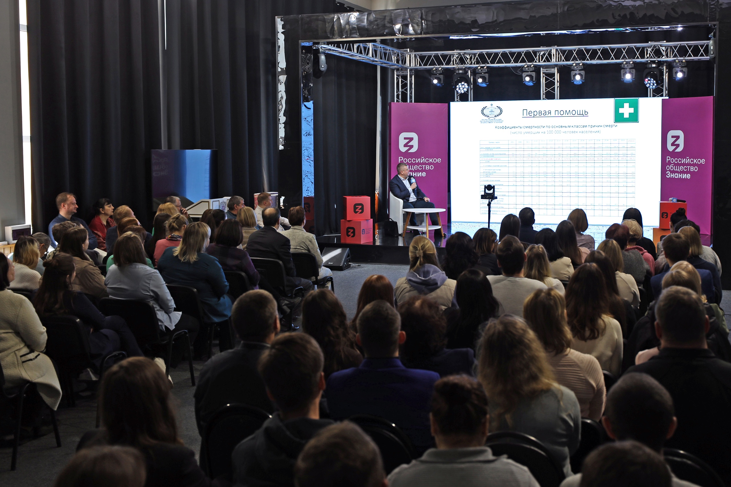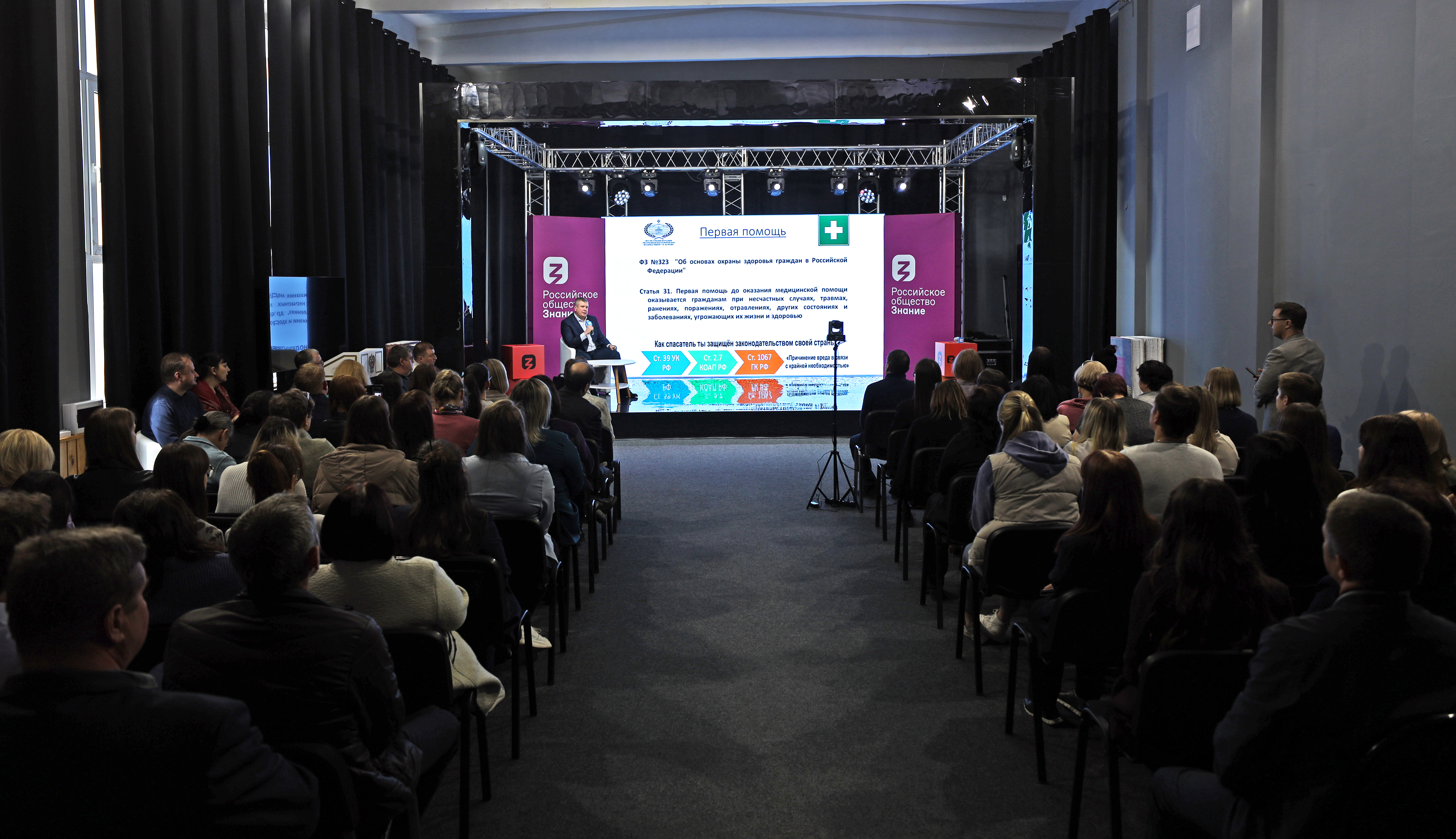 16 мая на площадке региональной студии Российского общества «Знание» состоялась вводная лекция для преподавателей и сотрудников по оказанию первой помощи кандидата медицинских наук, главного врача Республиканской клинической больницы имени С. В. Каткова Алексея Александровича Алагулова.
