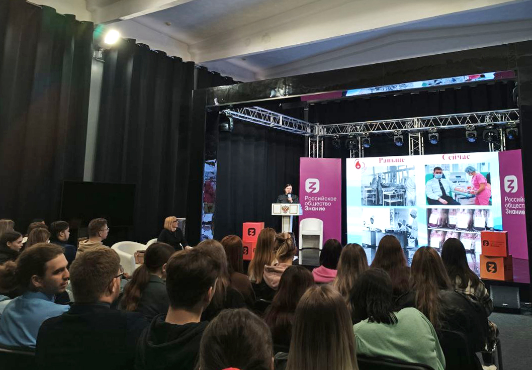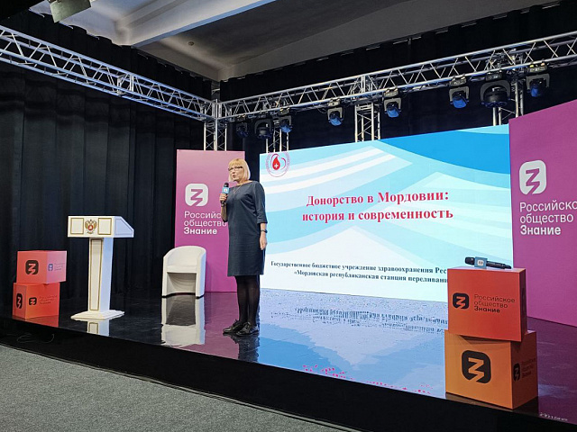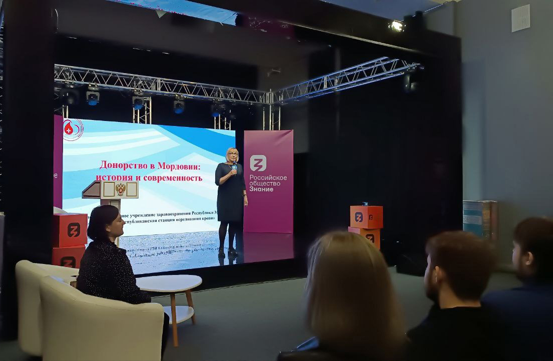17 мая на площадке региональной студии Российского общества «Знание» состоялась лекция «Донорство костного мозга и гемопоэтических стволовых клеток» представителей Станции переливания крови «Доноры крови Мордовии»: менеджера по связям с общественностью Асановой Натальи Викторовны и врача-терапевта, трансфузиолога ГБУЗ РМ «Мордовская РСПК» Семеновой Ольги Алексеевны.