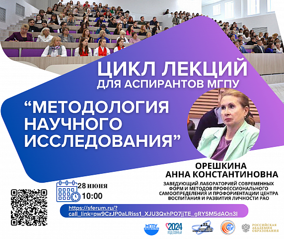 28 июня 2024 года в 10:00 лекцию проведет ученый секретарь Экспертного Совета по работе инновационных площадок РАО, заведующий Лабораторией современных форм и методов профессионального самоопределения и профориентации Центра воспитания и развития личности РАО, доктор педагогических наук,- Анна Константиновна Орешкина.