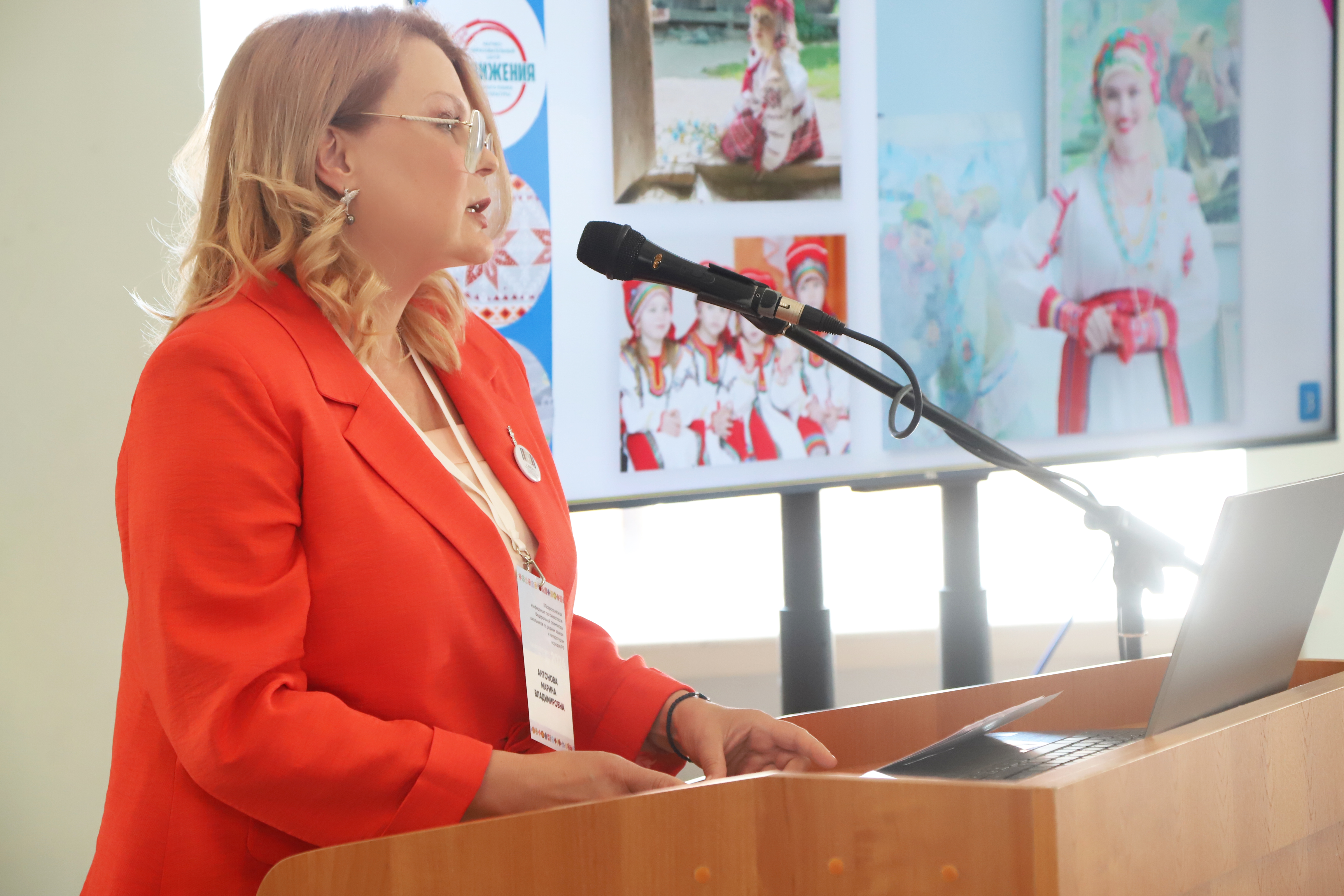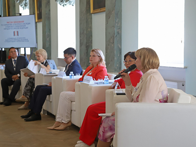 В работе пленарного заседания «Миссия образования по сохранению культурного наследия и языкового разнообразия народов России» доктор педагогических наук, профессор РАО, ректор Антонова Марина Владимировна представила опыт работы Мордовского государственного педагогического университета имени М. Е. Евсевьева по вопросам сохранения, развития и продвижения родных языков. В качестве стратегических линий в реализации данного направления в выступлении обозначены: подготовка высокопрофессиональных национальных педагогических кадров, владеющих современными технологиями; методическое обеспечение деятельности учителей родного языка: подготовка учебников, учебных пособий, образовательных программ; реализация просветительской миссии, развитие сотрудничества с образовательными организациями, проведение мероприятий по сохранению и развитию родных языков и культуры.