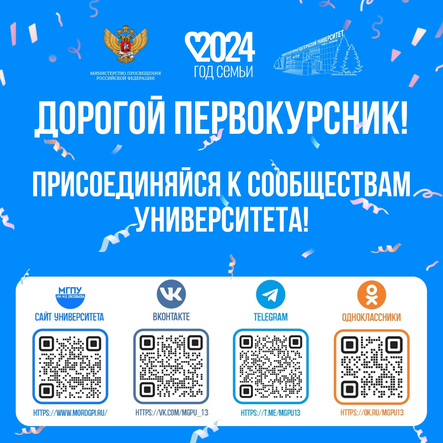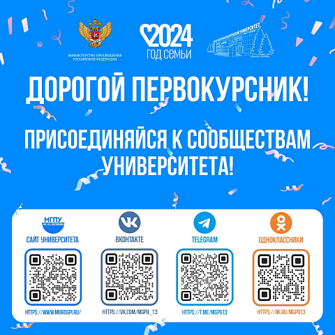 Первокурсник! Присоединяйся к сообществам университета, чтобы быть в курсе всех событий вуза. Актуальная информация, свежие новости и увлекательные возможности ждут тебя!