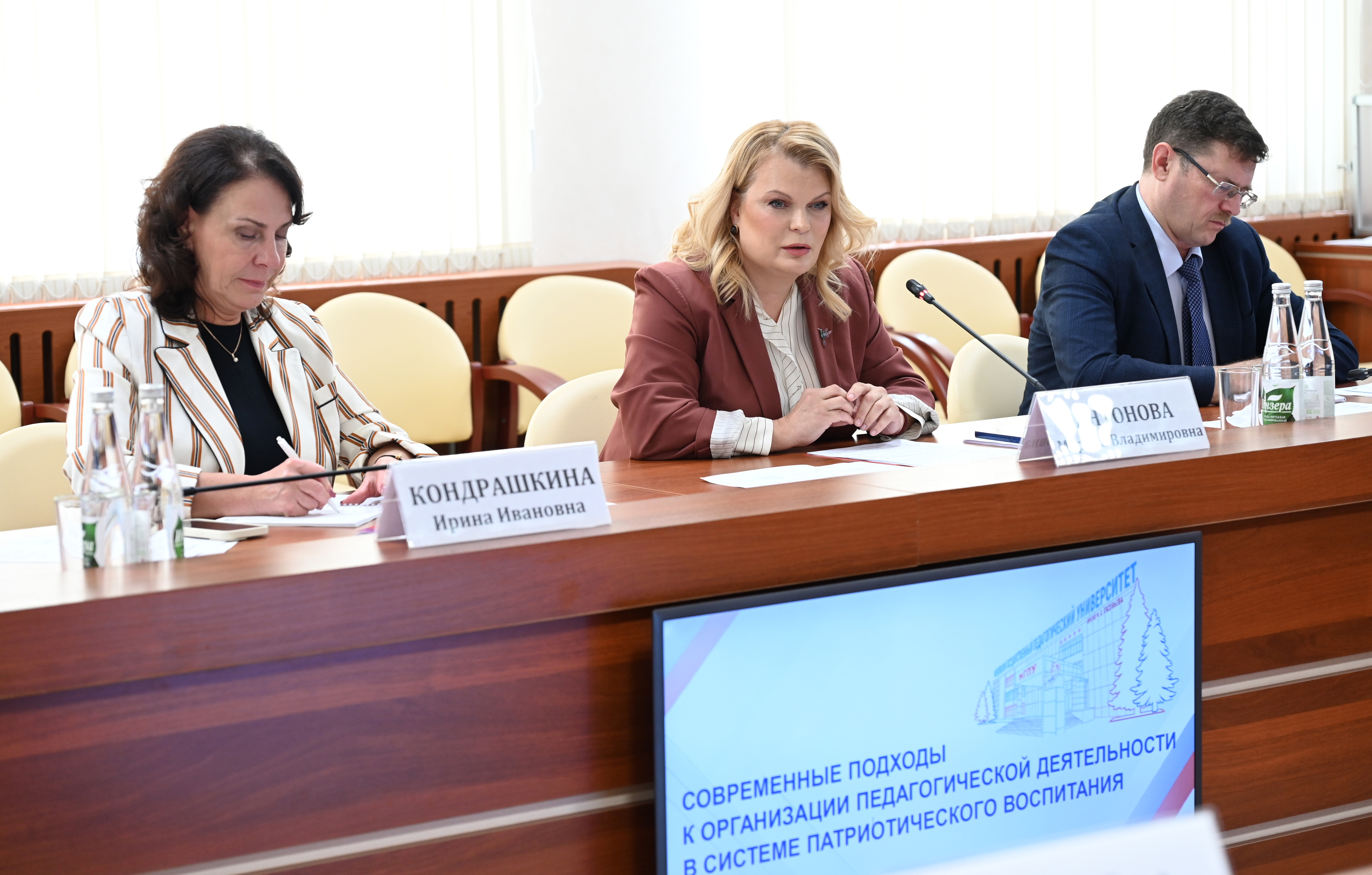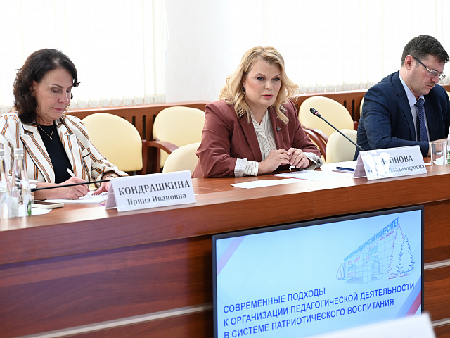 Ректор Мордовского государственного педагогического университета им. М. Е. Евсевьева Марина Владимировна Антонова выступила с одной из ключевых тем повестки дня – «Современные подходы к организации педагогической деятельности в системе патриотического воспитания студенчества».