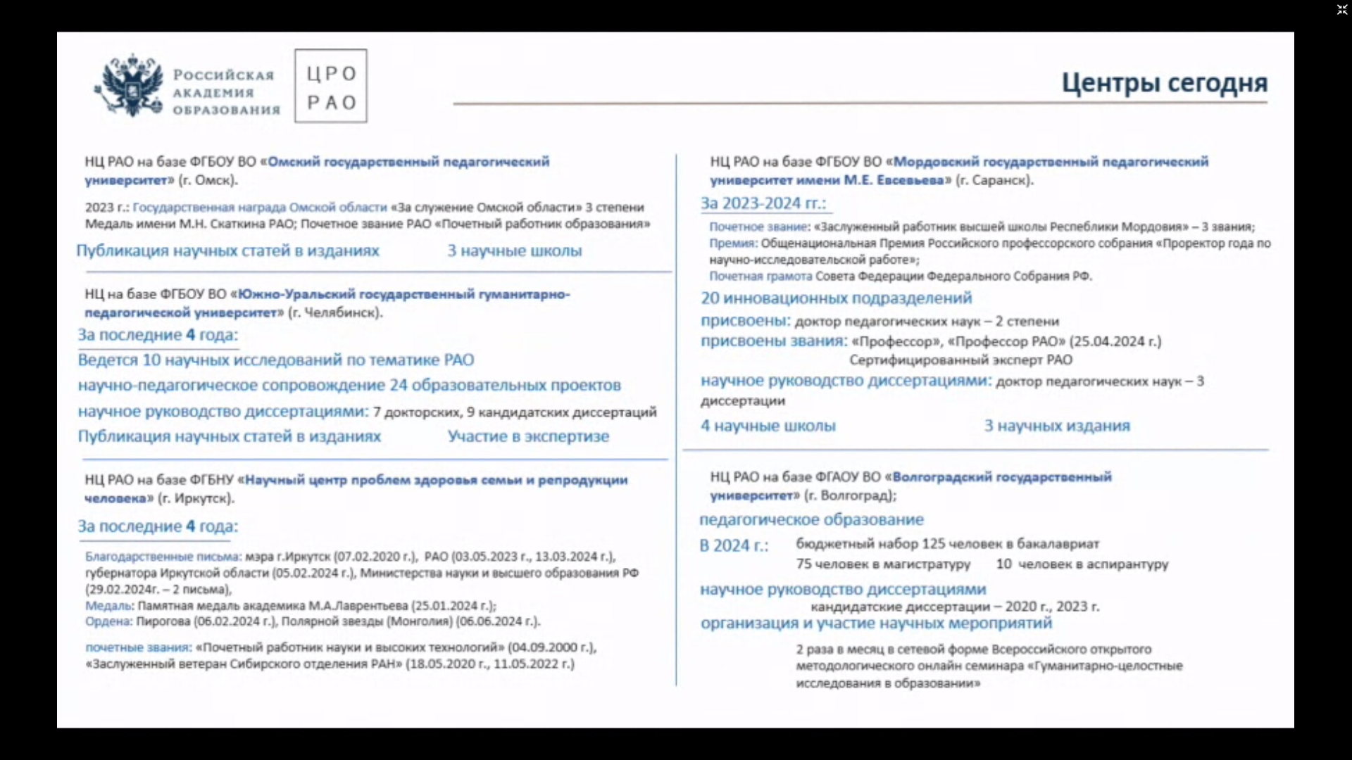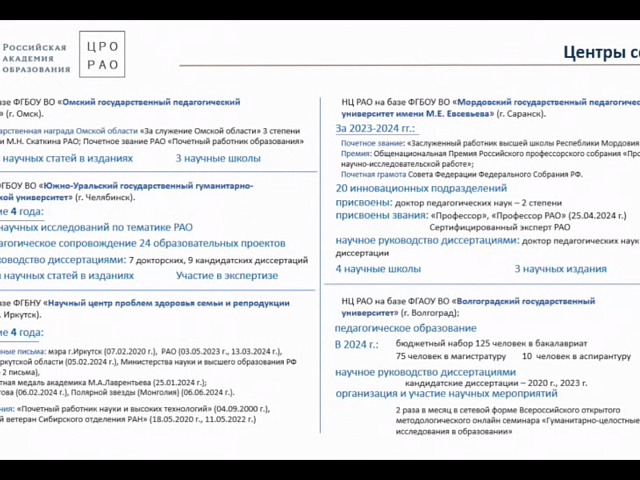 Работа семинара включала установочную, аналитическую и экспертную сессии, на которых выступили действительные члены РАО, представители РНЦ РАО и НЦ РАО.
