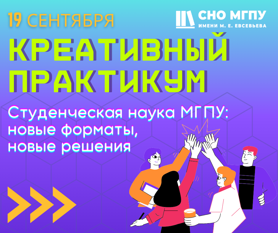 Приглашаем 19 сентября 2024 года в 15:30 на креативный практикум Студенческого научного общества, который состоится в ауд. №1 учебного корпуса №2.