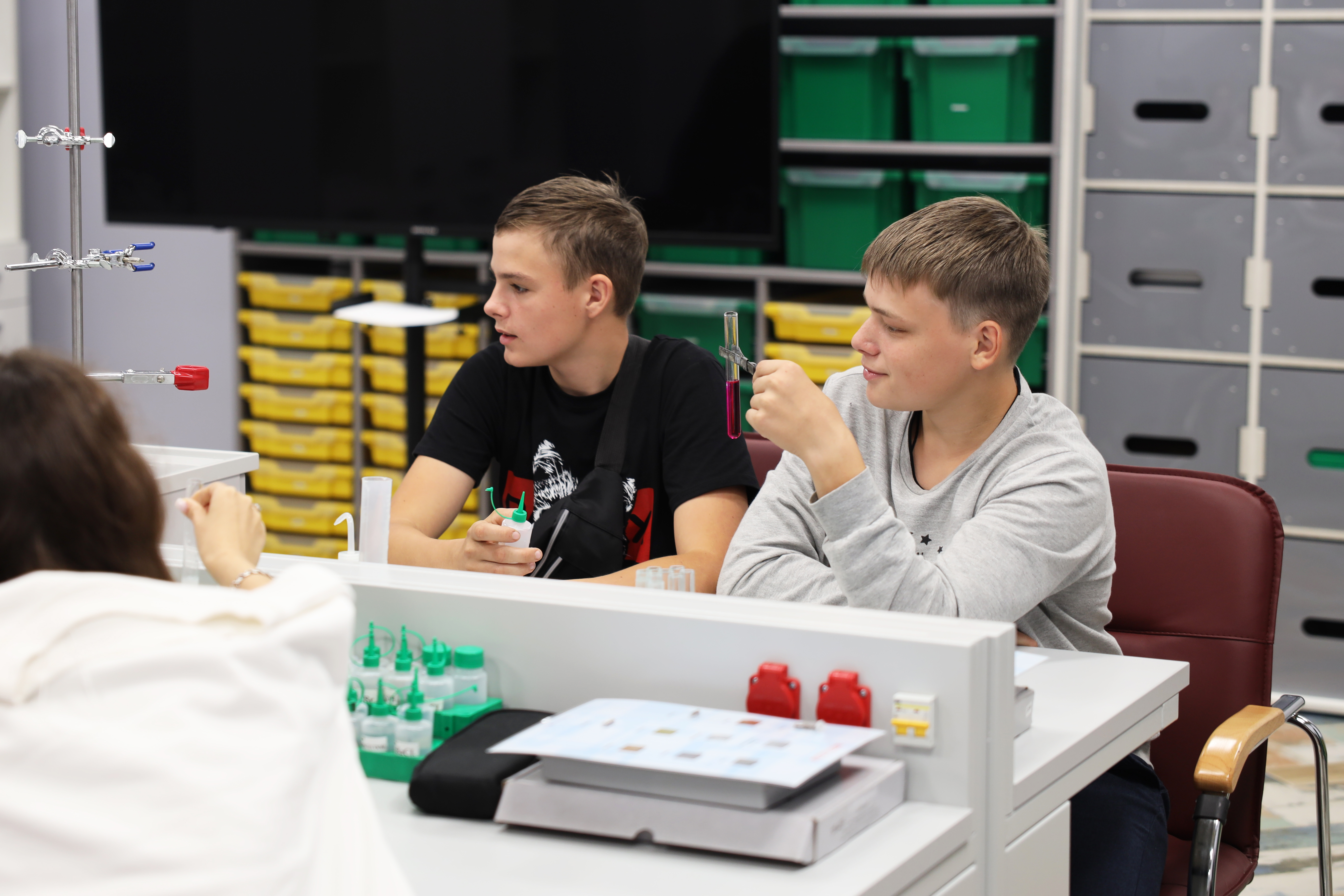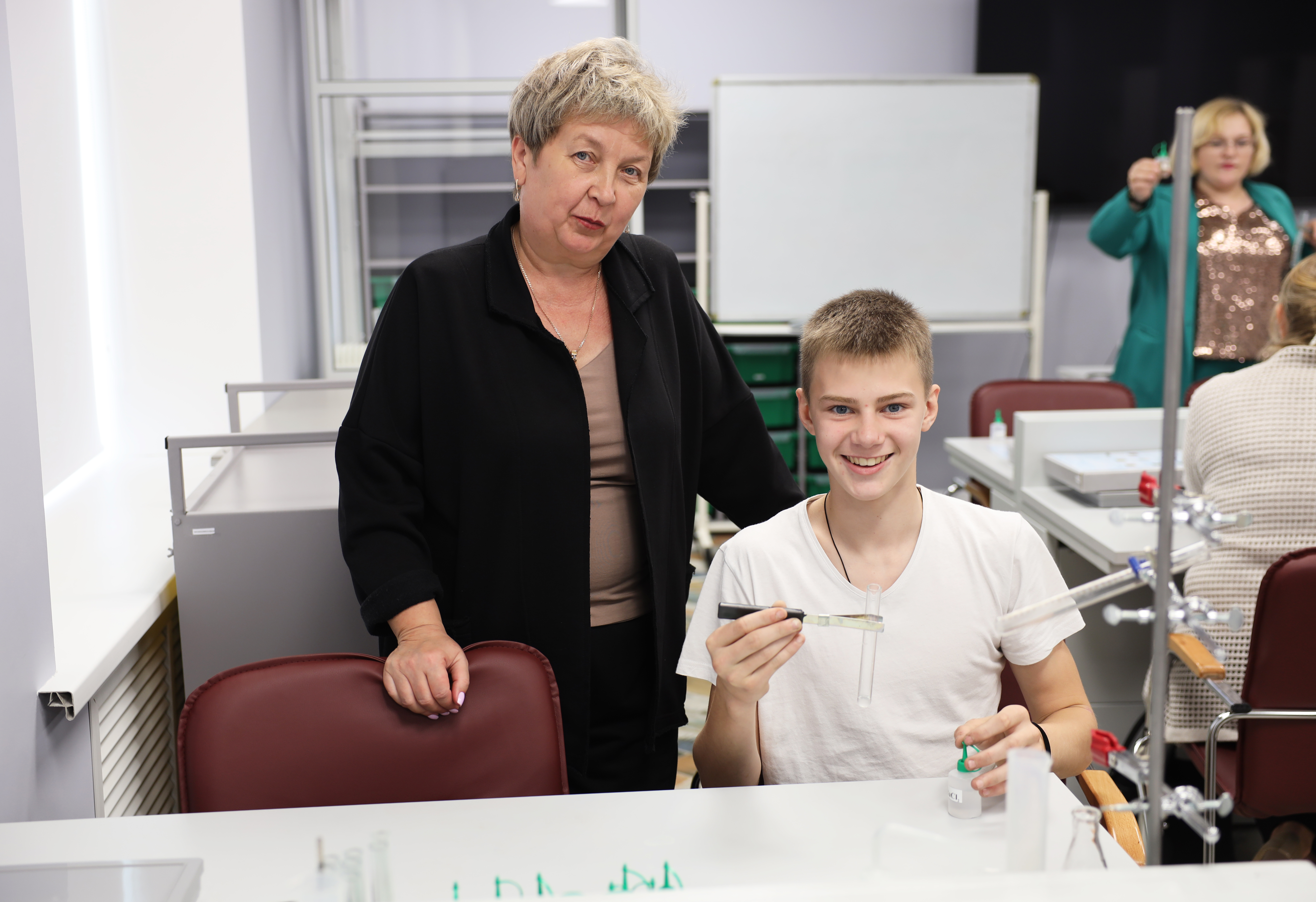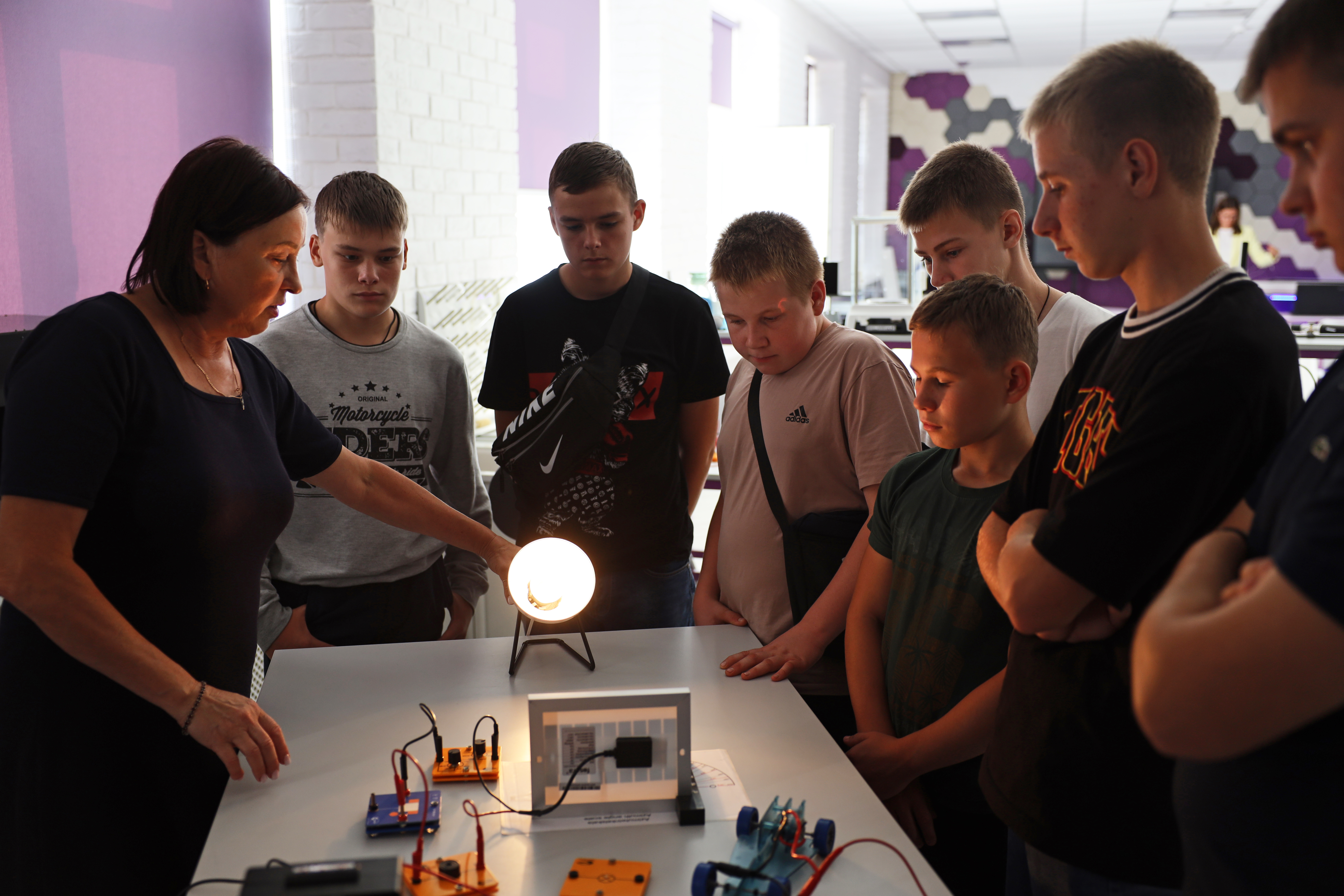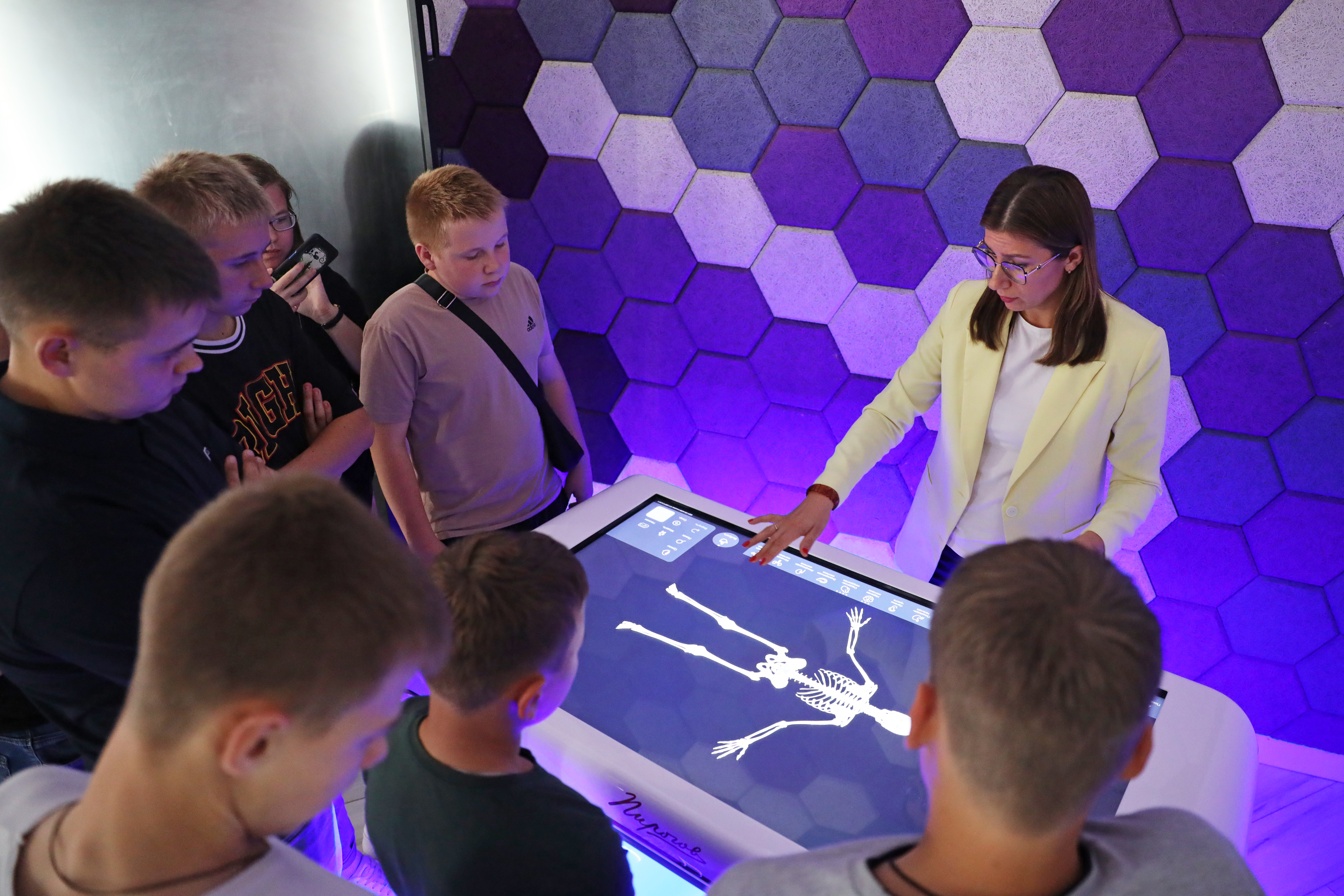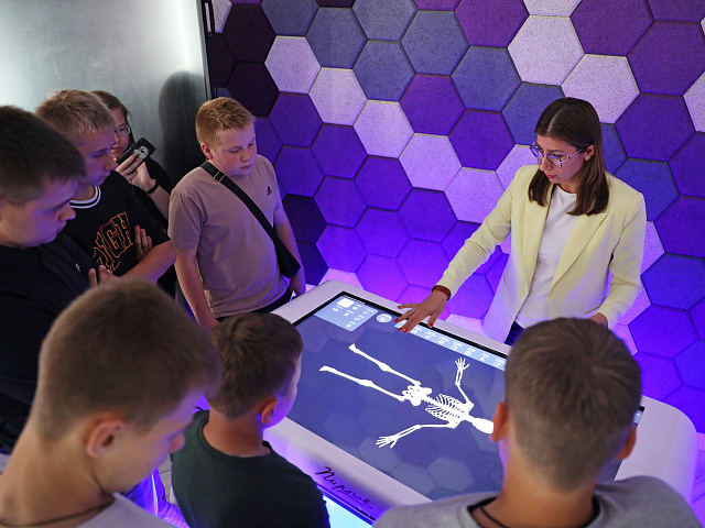 Особый интерес вызвала работа с квадрокоптером Tello, портативными VR-шлемами и интерактивным анатомическим столом «Пирогова». Кроме того, под руководством опытного химика ребята создали свои модели молекул воды и серной кислоты, провели реакцию нейтрализации, взвесили предметы на ученических весах с цифровой индикацией.