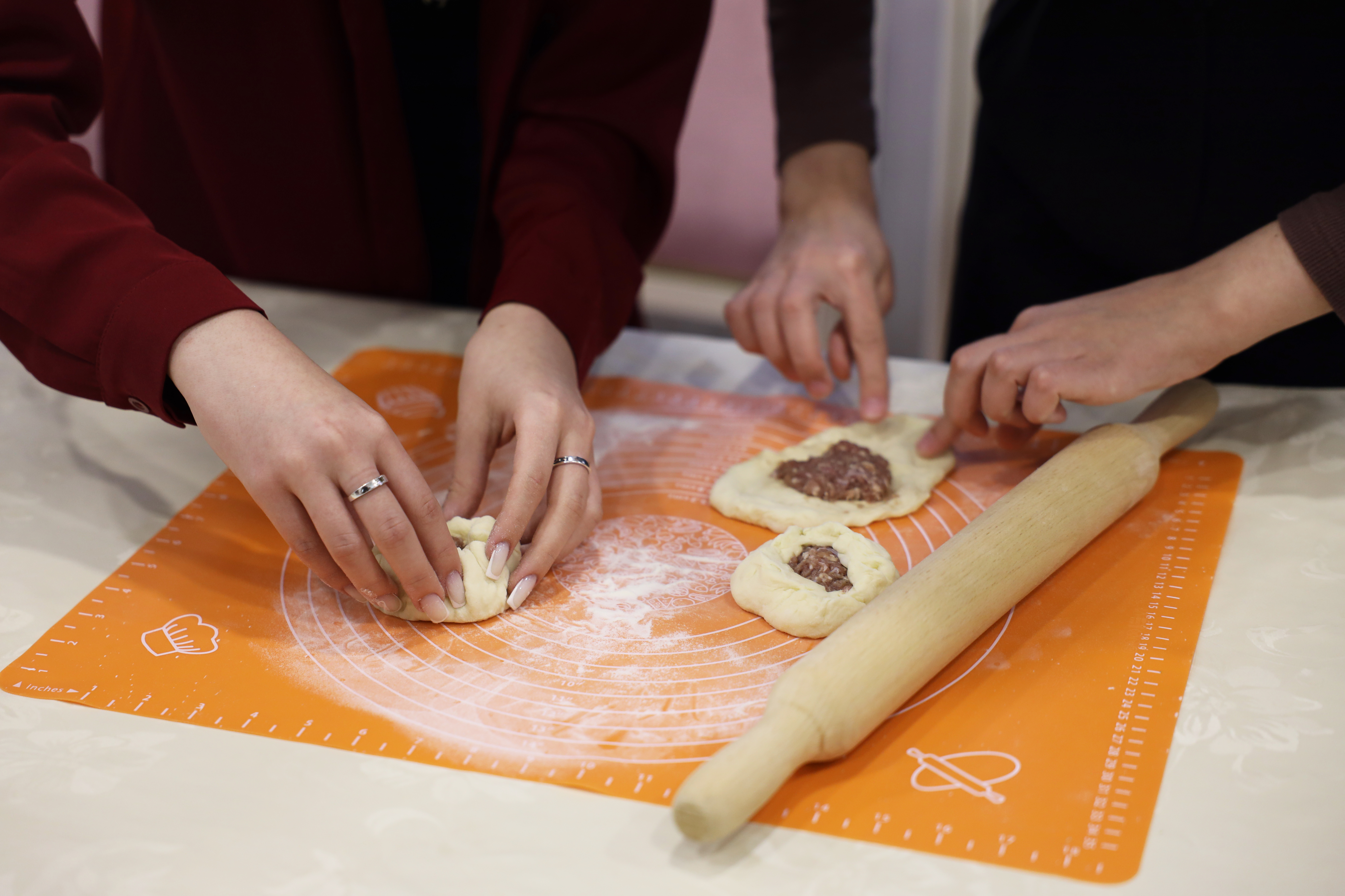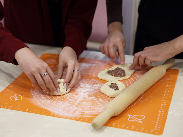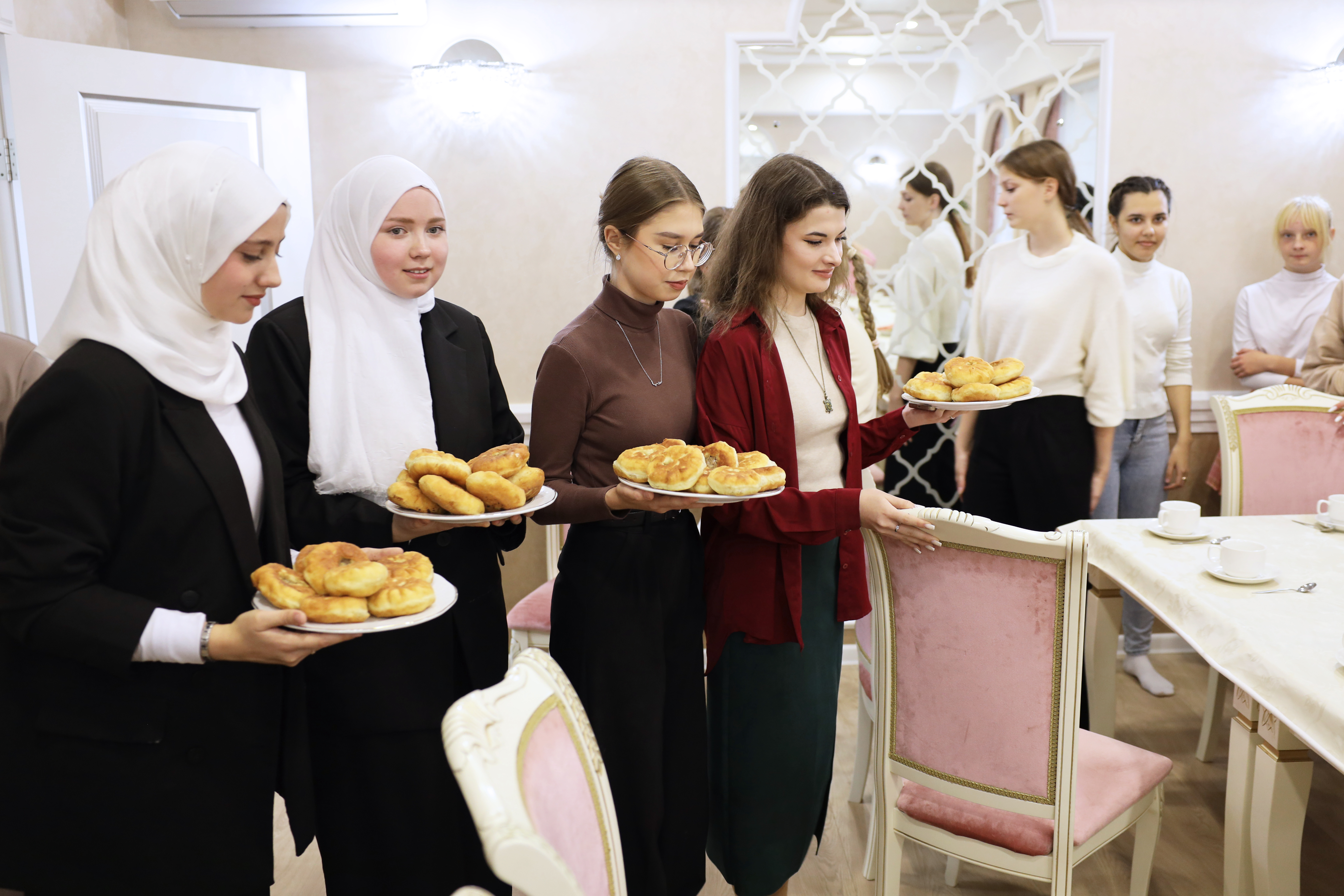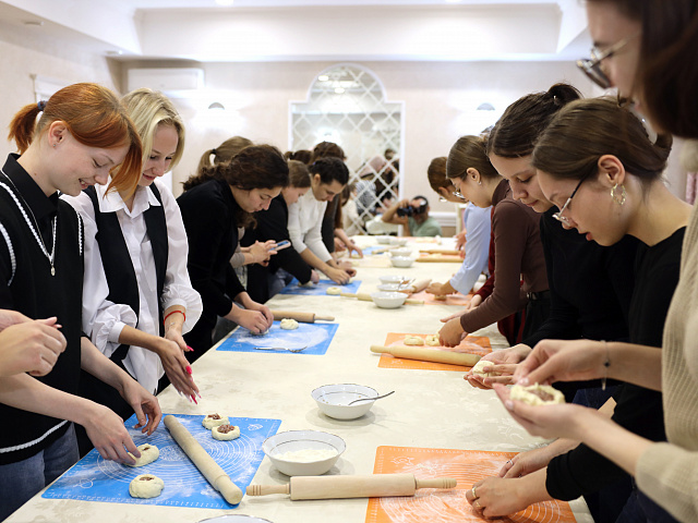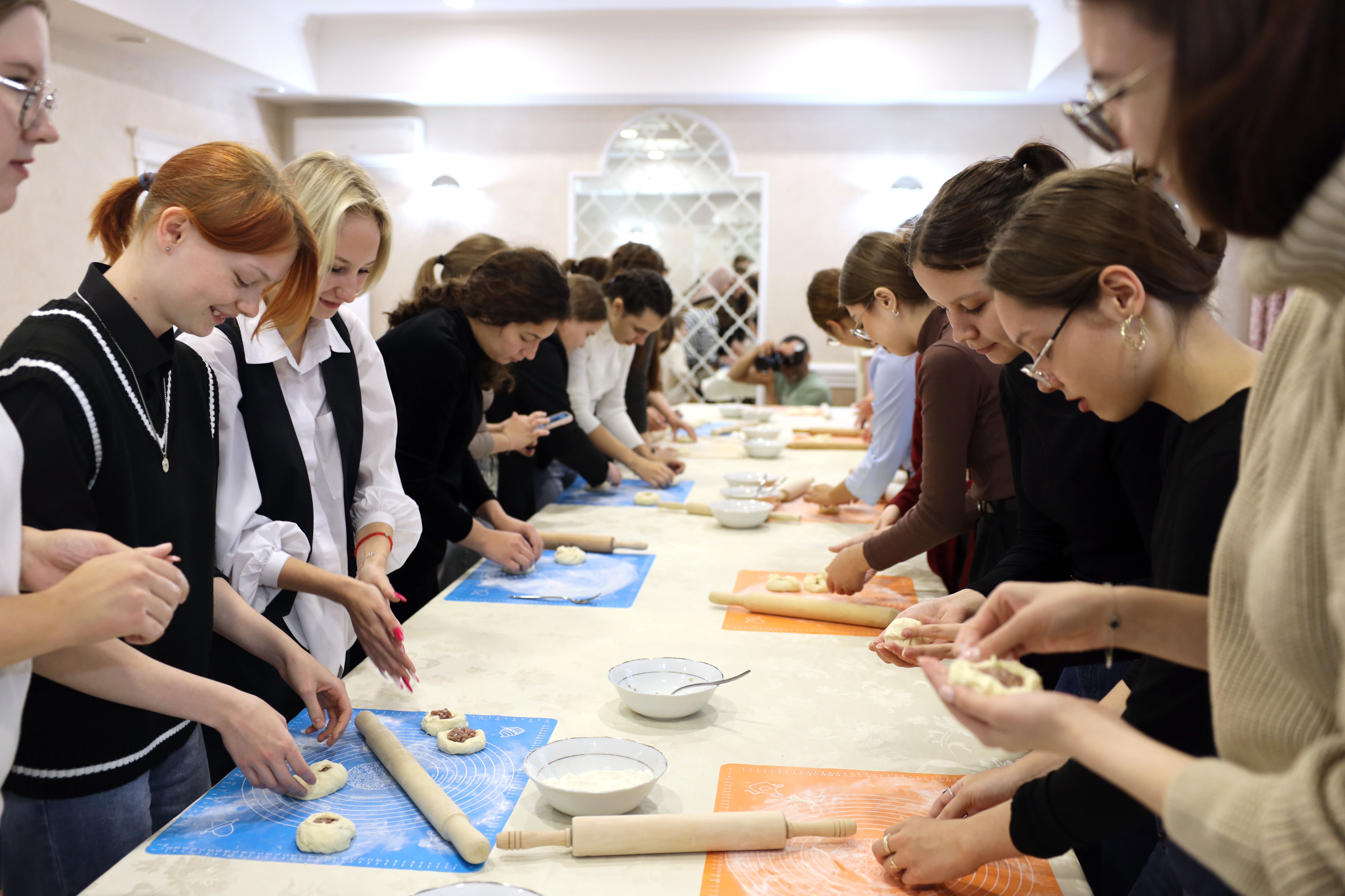 Центральным событием стал мастер-класс по приготовлению традиционных блюд. Студенты с воодушевлением осваивали технику изготовления русских и мордовских блинов, а также татарских пярямячей – знаменитых национальных пирожков. Освоив секреты кулинарного мастерства, участники с удовольствием продегустировали свои аппетитные шедевры.