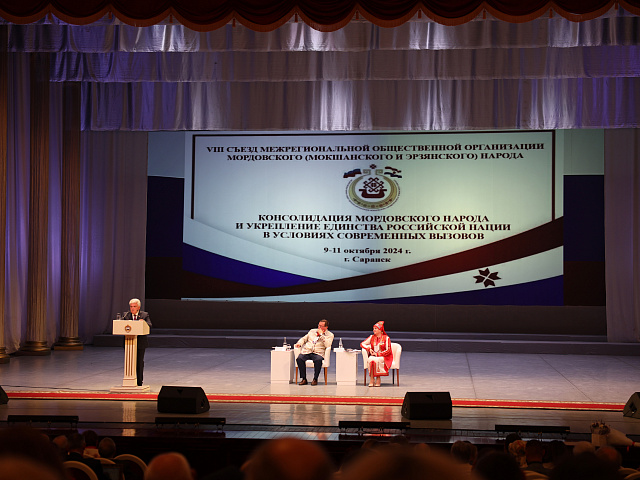 С 9 по 11 октября 2024 года в Саранске проходит VIII съезд Межрегиональной общественной организации мордовского (мокшанского и эрзянского) народа. Значимое для Мордовии мероприятие в этом году посвящено теме консолидации мордовского народа и укрепления единства российской нации в условиях современных вызовов. 345 делегатов, гостей и участников съезда приехали в нашу республику из 36 регионов страны и Эстонии, представители Казахстана подключились к работе в онлайн формате.