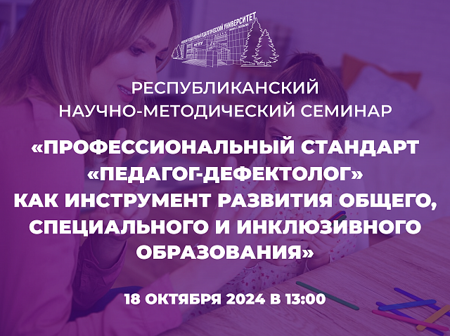 Кафедра специальной педагогики и медицинских основ дефектологии факультета психологии и дефектологии приглашает к участию в Республиканском научно-методическом семинаре «Профессиональный стандарт «Педагог-дефектолог» как инструмент развития общего, специального и инклюзивного образования».
