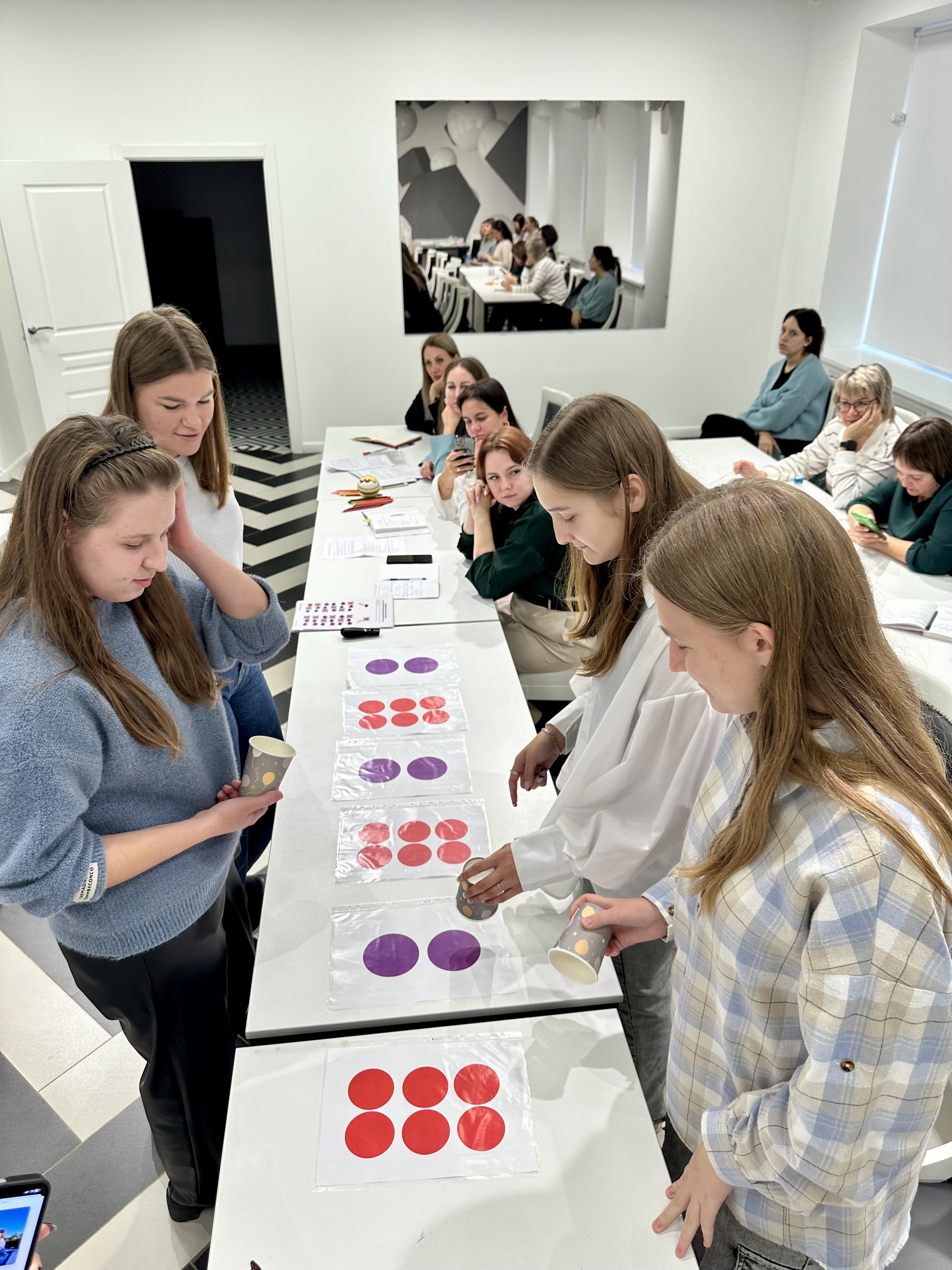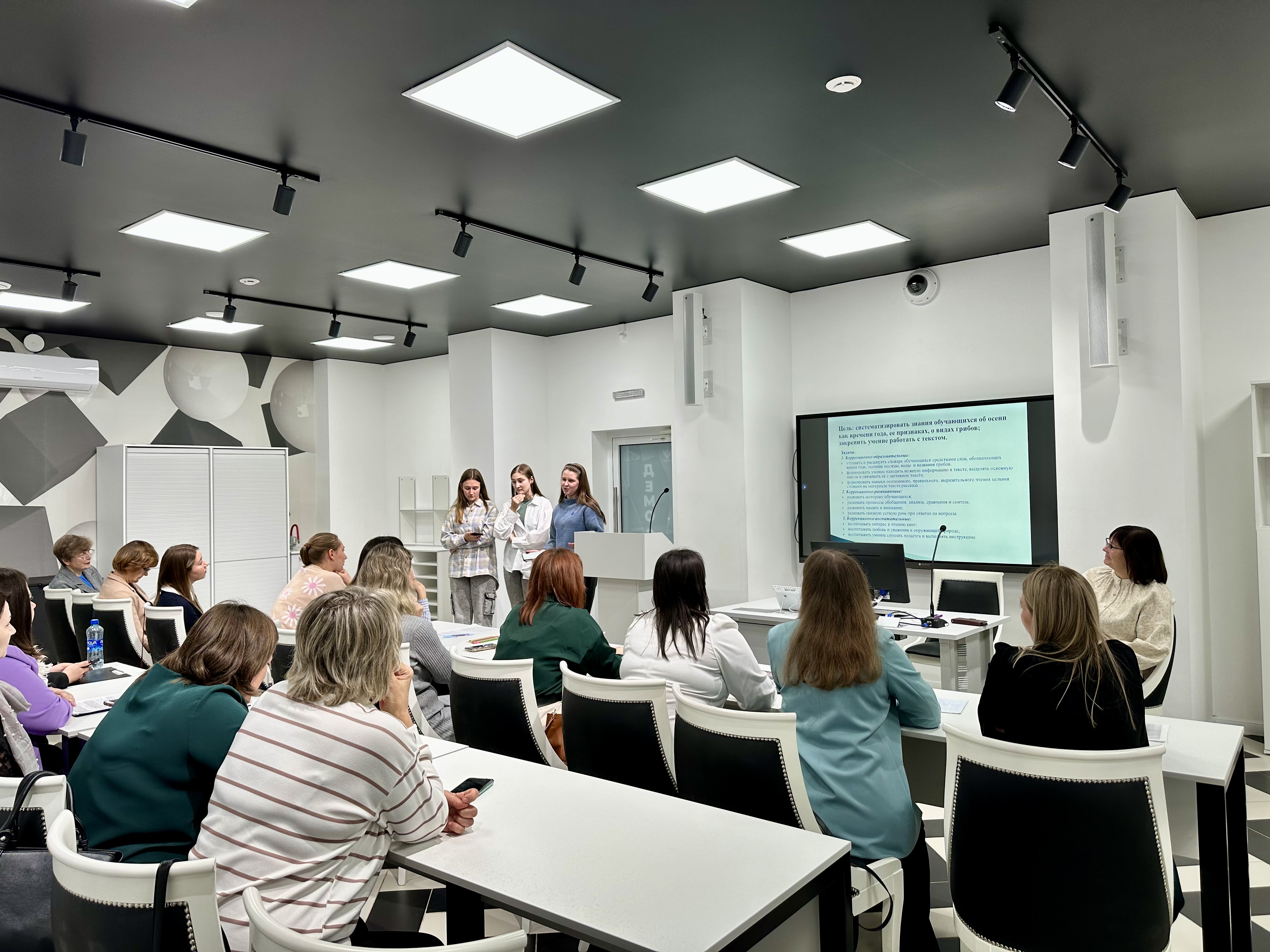 Для студентов, присутствующих на семинаре, процесс носил обучающий характер. Находясь в демо-студии, они имели возможность, с одной стороны, увидеть демонстрацию лучших практик инклюзивного образования, познакомиться с инновационными методами и технологиями работы с «особым» ребенком; а с другой стороны – ощутить атмосферу взаимодействия в профессиональном сообществе, «влиться» в деятельность учителя-дефектолога, участвуя в качестве волонтеров в проведении мастер-классов. Студенты приняли активное участие в обсуждении увиденного, в рефлексии просмотренного.
