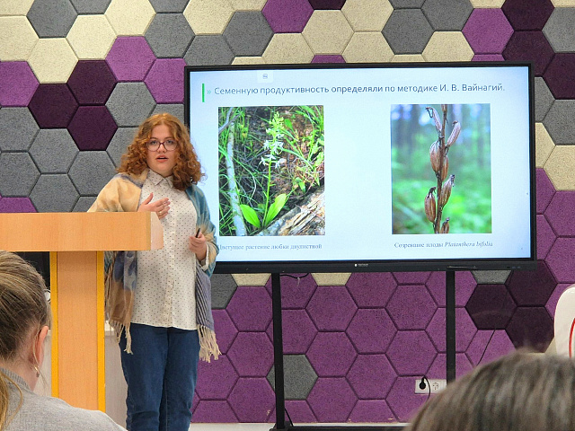Изучению отдельных видов растений были посвящены сообщения студентки 3 курса профиля «Биология. География» Д. Д. Зуевой (тема «Изучение популяции любки двулистной (сем. Orchidaceae) в условиях антропогенной нагрузки»).