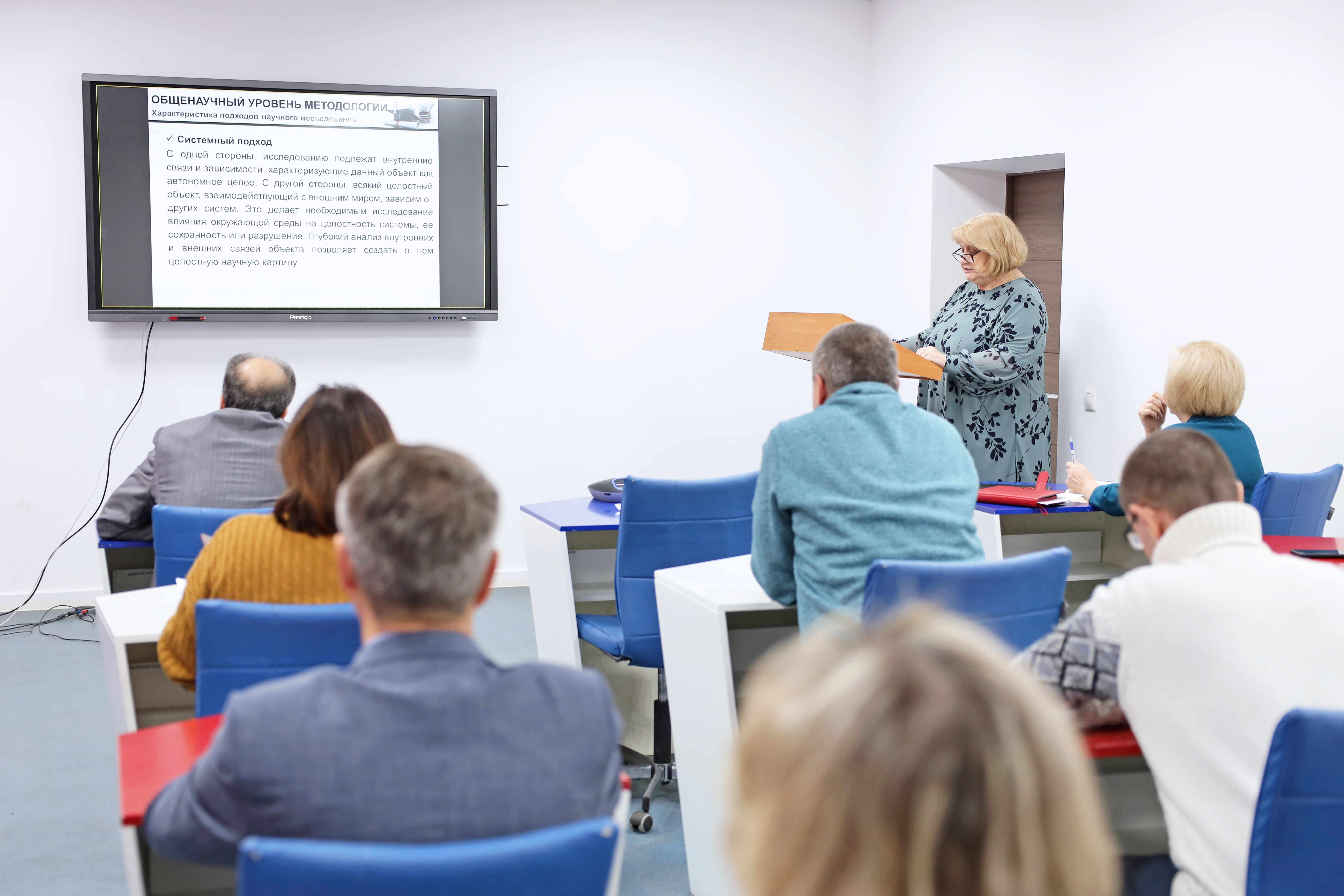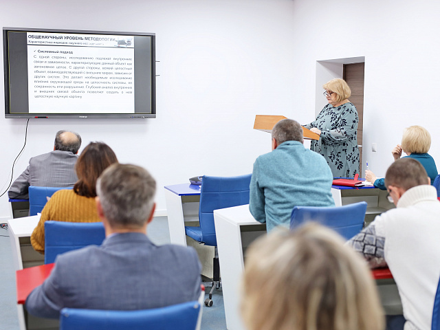 24 октября 2024 года в рамках цикла мероприятий «Академические встречи» проректор по научной работе Татьяна Ивановна Шукшина презентовала одну из самых значимых проблем философии науки – методология научного познания. В ходе встречи состоялось обсуждение доклада доктора философских наук, профессора кафедры права и философии Елены Анатольевны Мартыновой на тему «Общенаучный уровень методологии научного познания». В основной части своего доклада лектор Е. А. Мартынова приходит к выводу, что «Успех научного исследования, объективность получения знания обусловлены, прежде всего, выбором методологии исследования, которая определяется многими факторами: знанием основных уровней методологии, пониманием структурных единиц каждого из них, грамотной интерпретацией методологических подходов, принципов и методов познания».