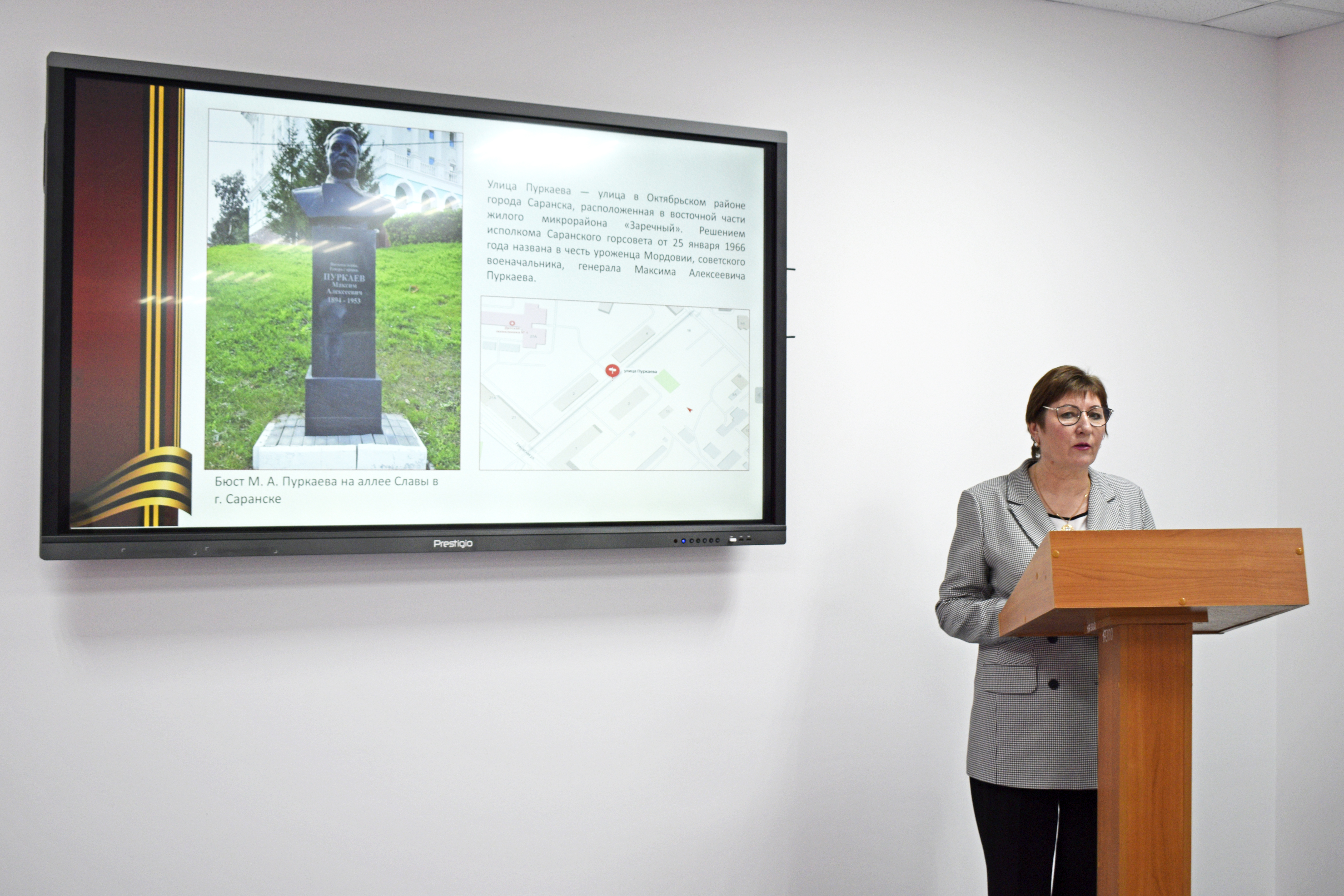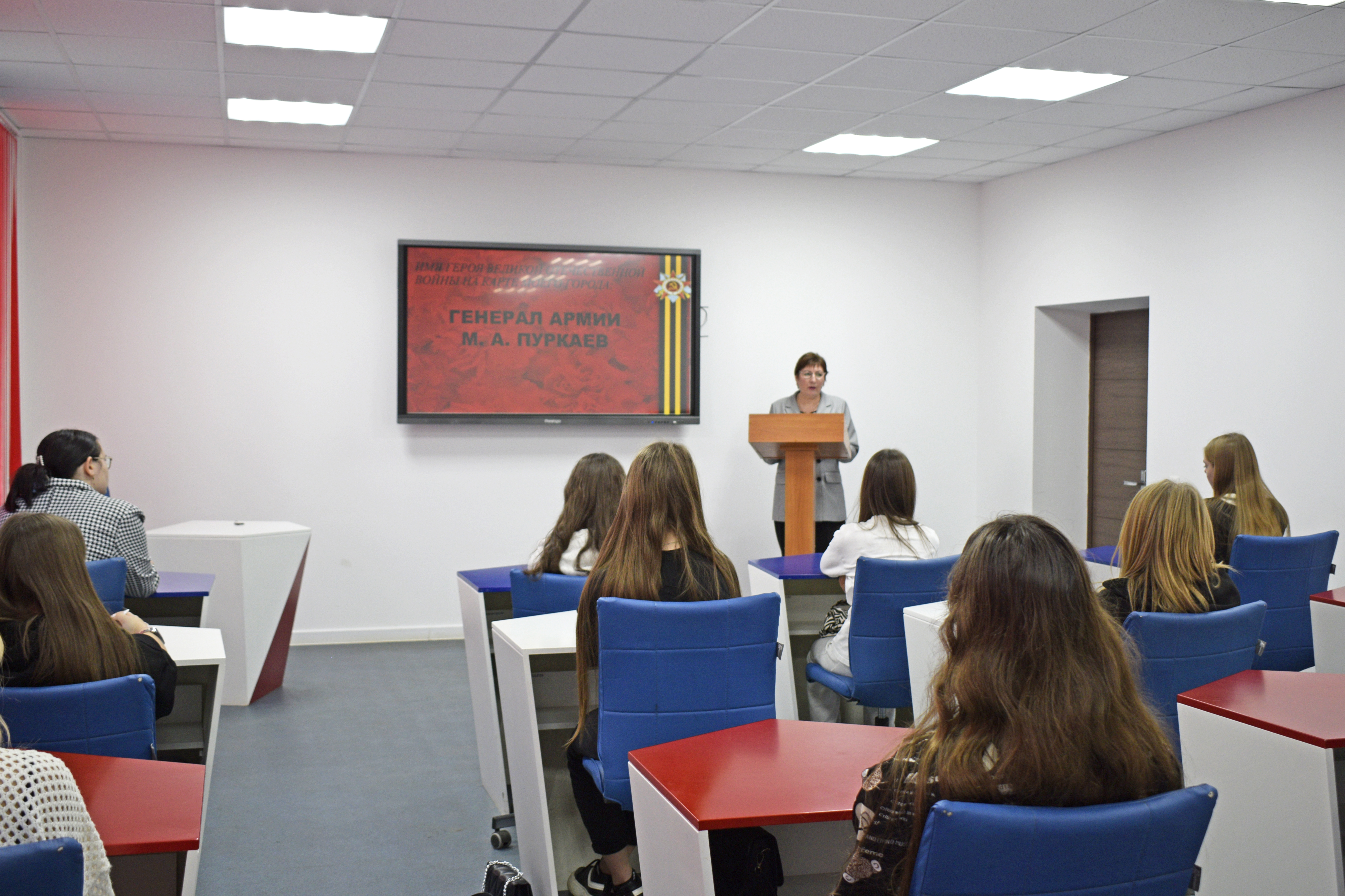 Доцент кафедры отечественной и зарубежной истории и методики обучения Р. Н. Каукина провела интерактивную лекцию «Генерал армии М. А. Пуркаев: жизнь и деятельность», приуроченную к 130-летию со дня рождения знаменитого советского военачальника. Основной целью мероприятия стало гражданско-патриотическое воспитание школьников и формирование их исторической памяти через знакомство с тематикой Великой Отечественной войны.
