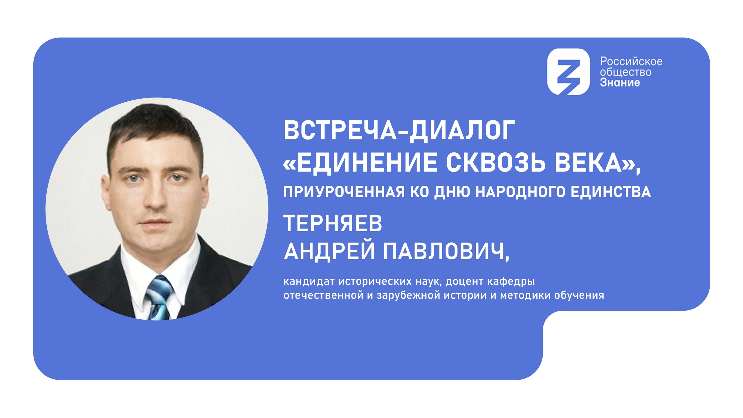 Лектором выступит кандидат исторических наук, доцент кафедры отечественной и зарубежной истории и методики обучения Андрей Павлович Терняев, чьи научные изыскания и опыт позволят глубже понять контекст и важность единства в историческом и современном аспектах.