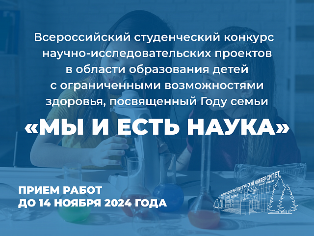 На факультете психологии и дефектологии успешно проходит Всероссийский студенческий конкурс научно-исследовательских проектов в области образования детей с ограниченными возможностями здоровья, посвященный году Семьи «Мы и есть наука», стартовавший 28 октября 2024 года.