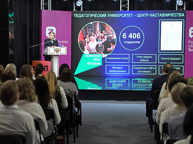 Ректор Мордовского государственного педагогического университета Марина Антонова, раскрывшая педагогическое наставничество как стратегию развития кадрового потенциала, акцентировала внимание на значимости практической подготовки студентов: «В этом году около четырехсот студентов педагогического университета работают в образовательных организациях, более тысячи – в детских оздоровительных лагерях, выступая в роли наставляемых и наставников, совершенствуют свои навыки, развиваются, становятся профессионалами в выбранной сфере».