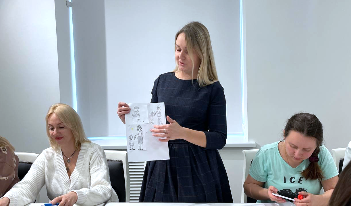 Преподаватели факультета психологии и дефектологии в интерактивной форме провели психологическую мастерскую, в рамках которой представили приёмы эффективного общения в семье, развитие родительской компетентности с учётом возраста, озвучили рекомендации для благополучного родительства. Также участники закрепили умение конструктивно договариваться и общаться со своим ребёнком в разных социальных ситуациях. Примеры упражнений включали моделирование ситуации «в магазине», где каждый родитель принимал на себя роль «родителя» и «ребёнка», а также упражнение-визуализацию «создание образа благополучной семьи», в ходе которого родители рисовали и описывали идеальный образ своей семьи, обсуждая его вместе с другими участниками.