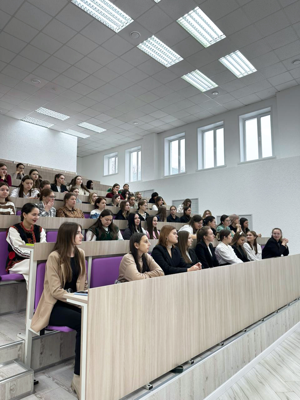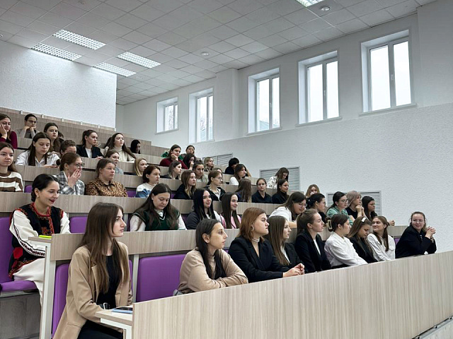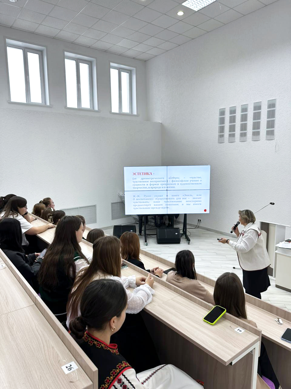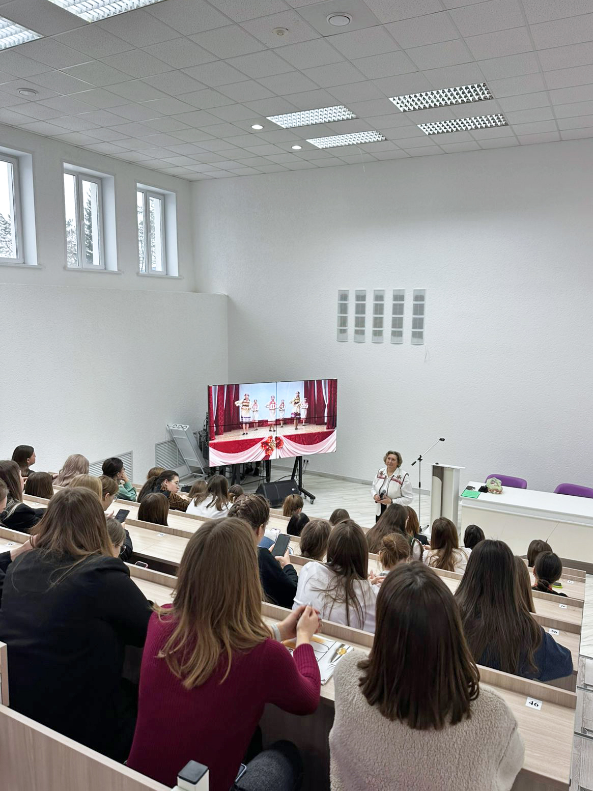 Лектор ознакомила студентов с мордовскими народными песнями как в собственном исполнении, так и в исполнении Екатерины Зиновой, студентки 4 курса профиля Музыка. Дошкольное образование. Евсевьевцев познакомили с выразительными пословицами, загадками и предметами мордовского декоративно-прикладного искусства.