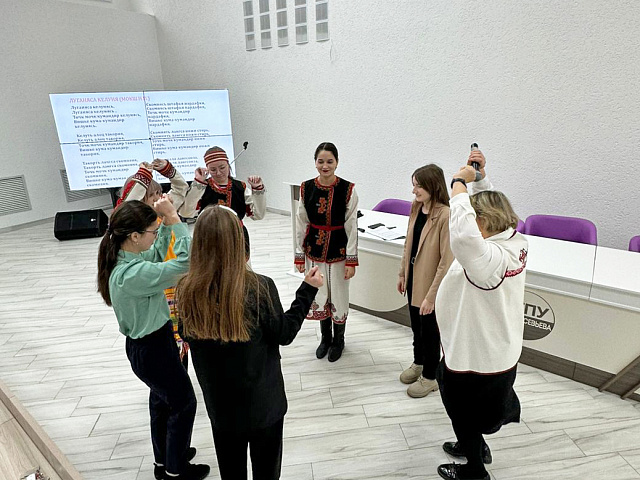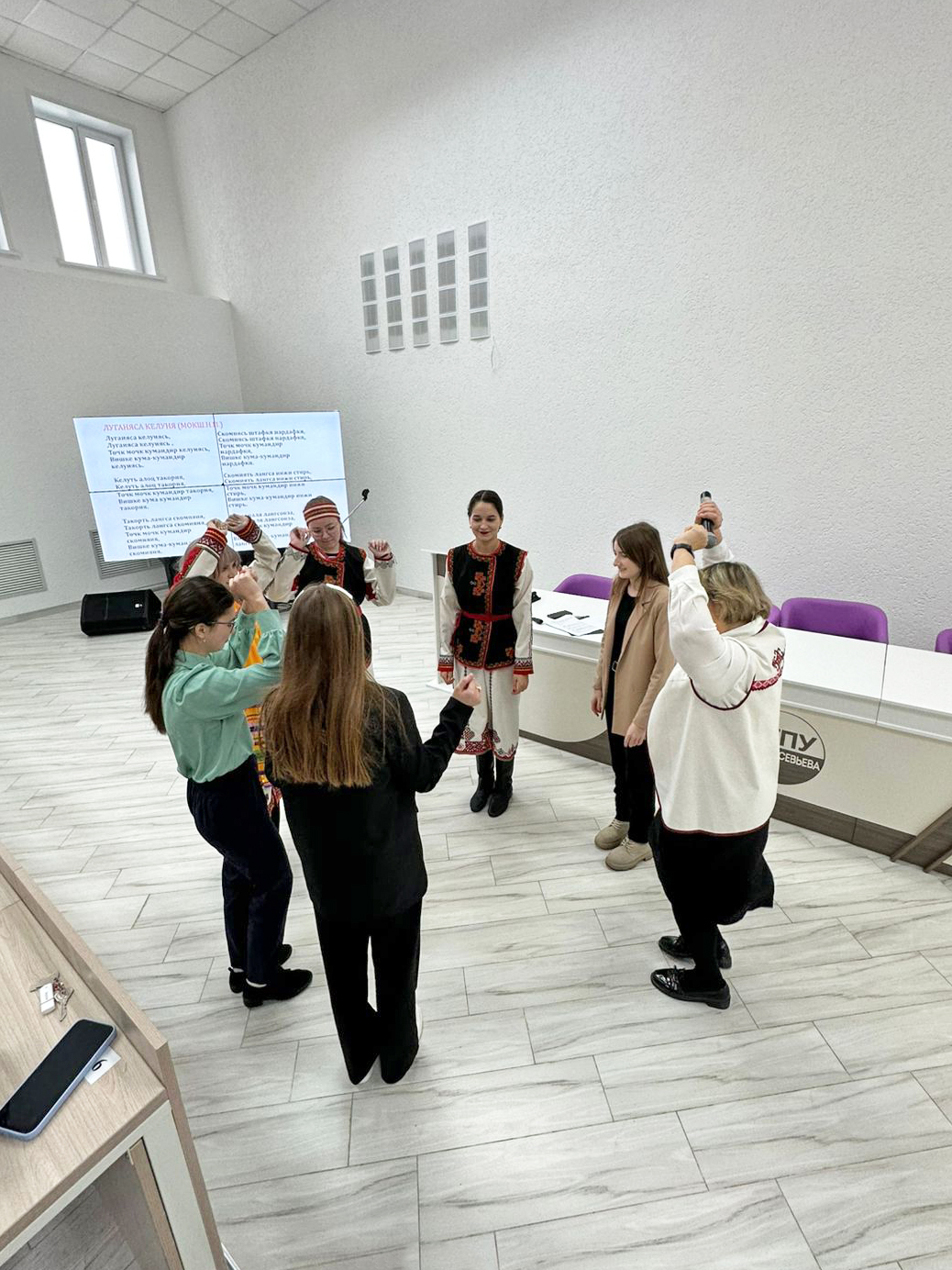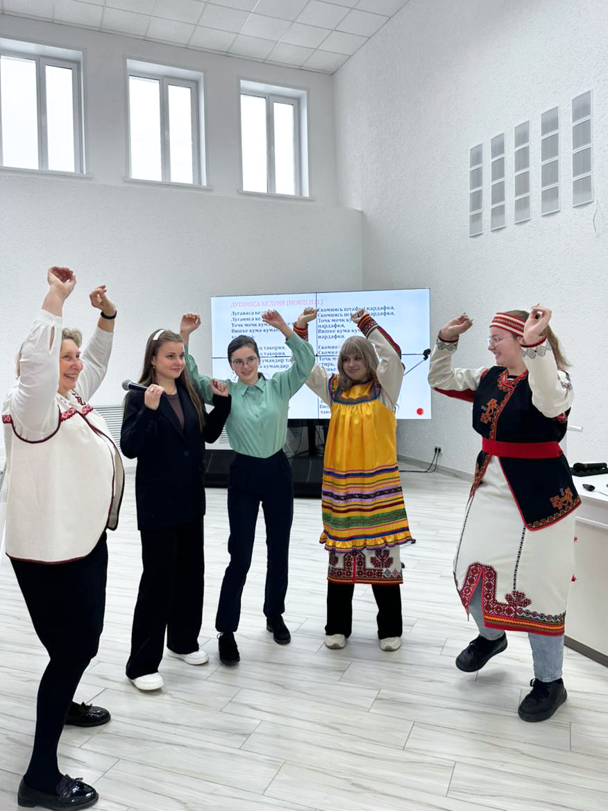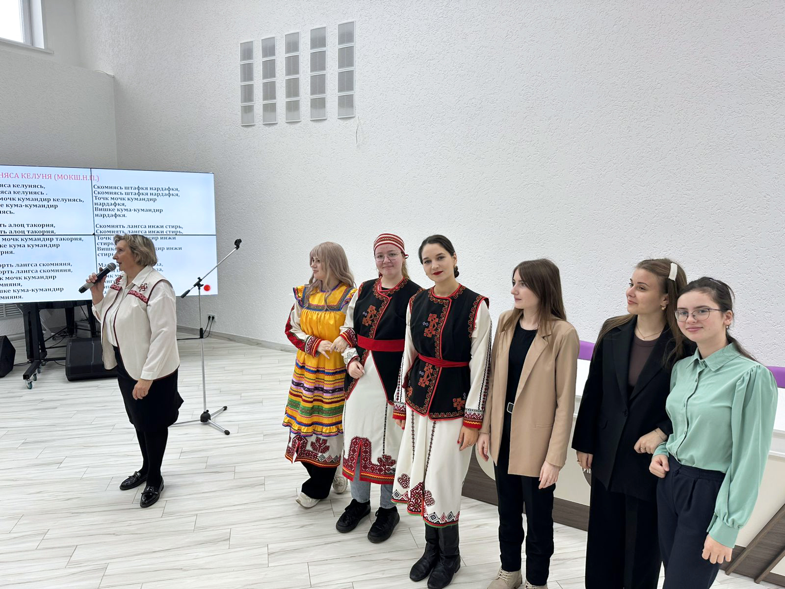 Заключительная часть лекции была посвящена разучиванию мордовских народных песен, а также элементам мордовских народных танцев.