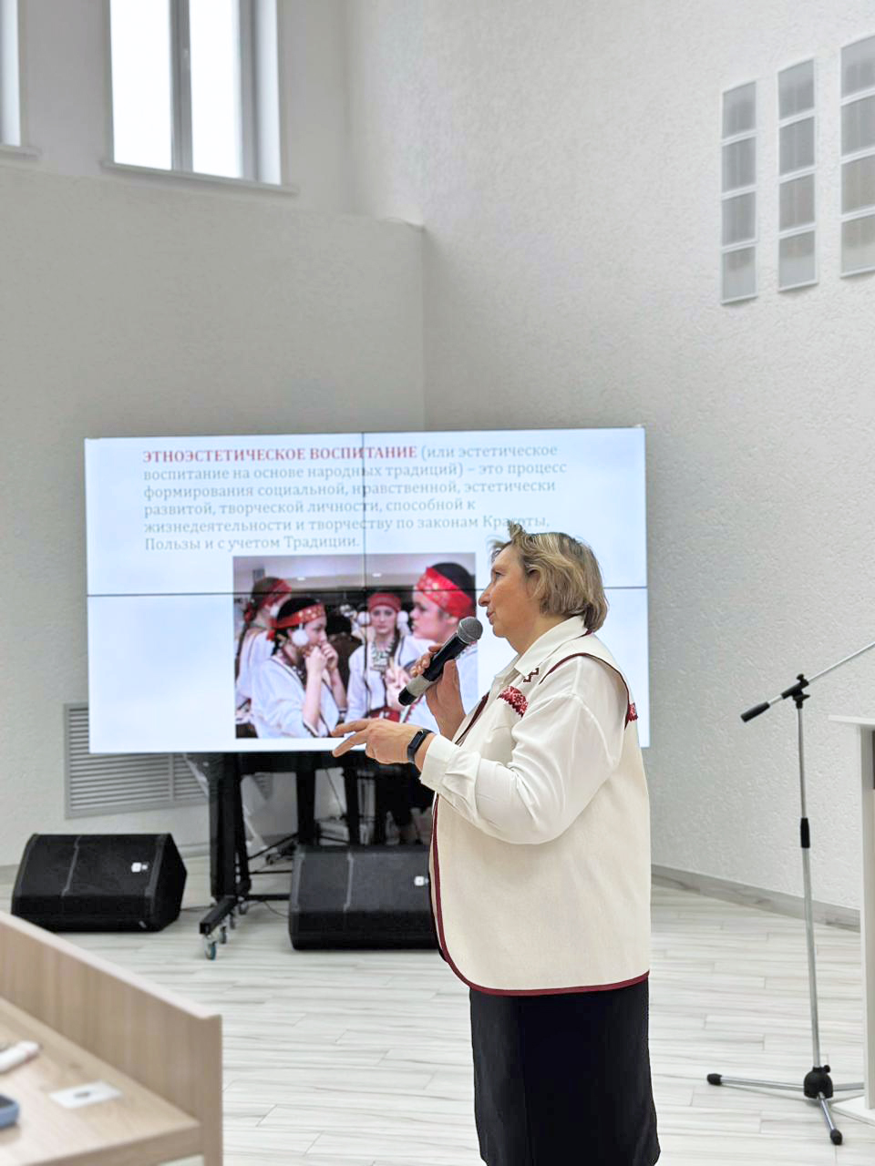 Доктор педагогических наук, профессор кафедры художественного и музыкального образования Лариса Карпушина раскрыла содержательные стороны понятий «эстетика жизни» и «воспитательные традиции мордовского народа». Она объяснила, почему у любого народа – русского, мордовского, татарского, чувашского – существует своя эстетика жизни. Также Лариса Павловна отметила, что эту эстетику народ транслирует детям, так как только таким образом возможно сохранить культуру этноса, его мировоззрение и генетический код.