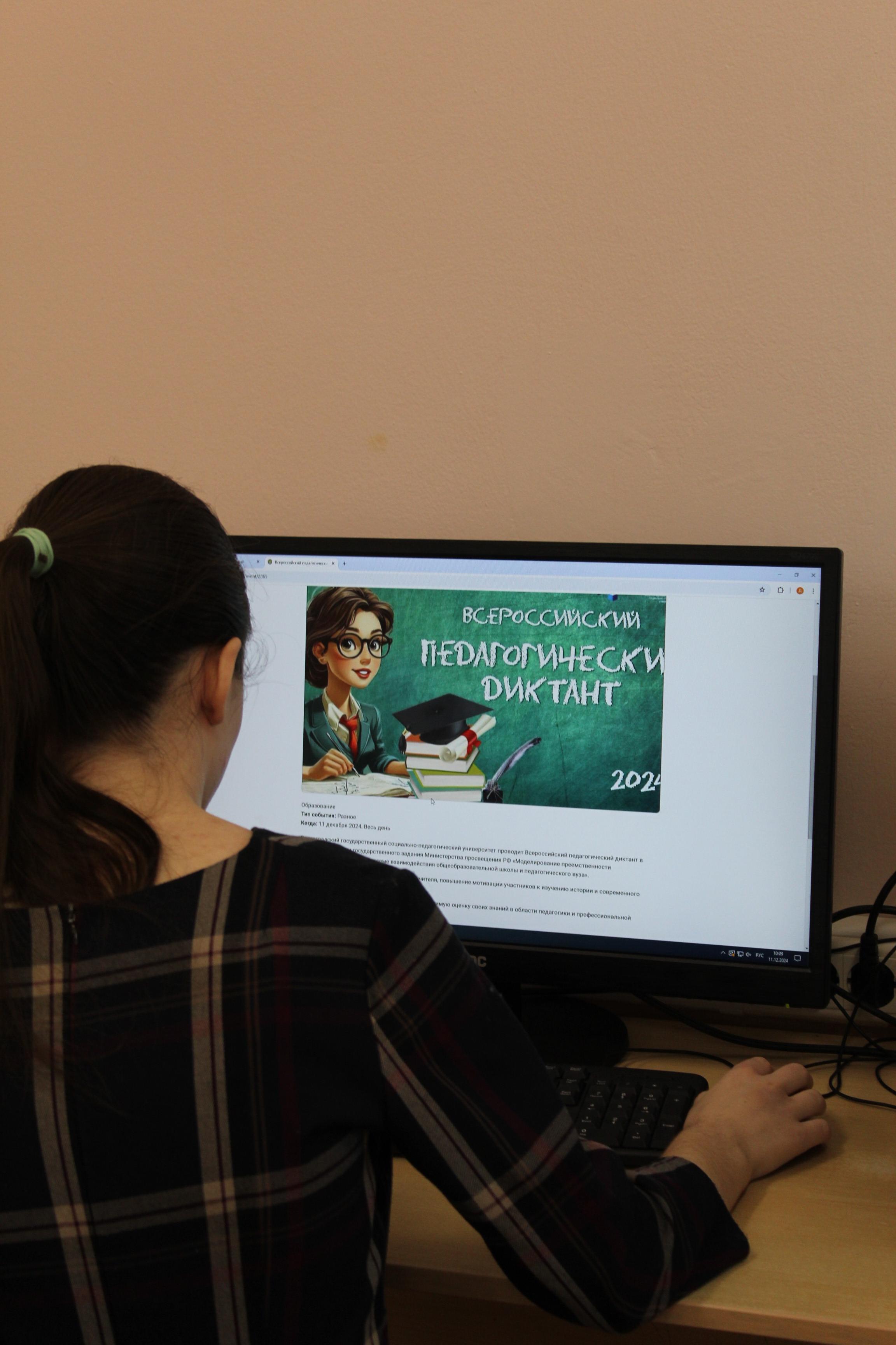 11 декабря студенты Мордовского государственного педагогического университета имени М. Е. Евсевьева приняли участие во Всероссийском педагогическом диктанте, организованном Волгоградским государственным социально-педагогическим университетом в рамках государственного задания Министерства просвещения РФ «Моделирование преемственности воспитывающей среды в системе взаимодействия общеобразовательной школы и педагогического вуза».