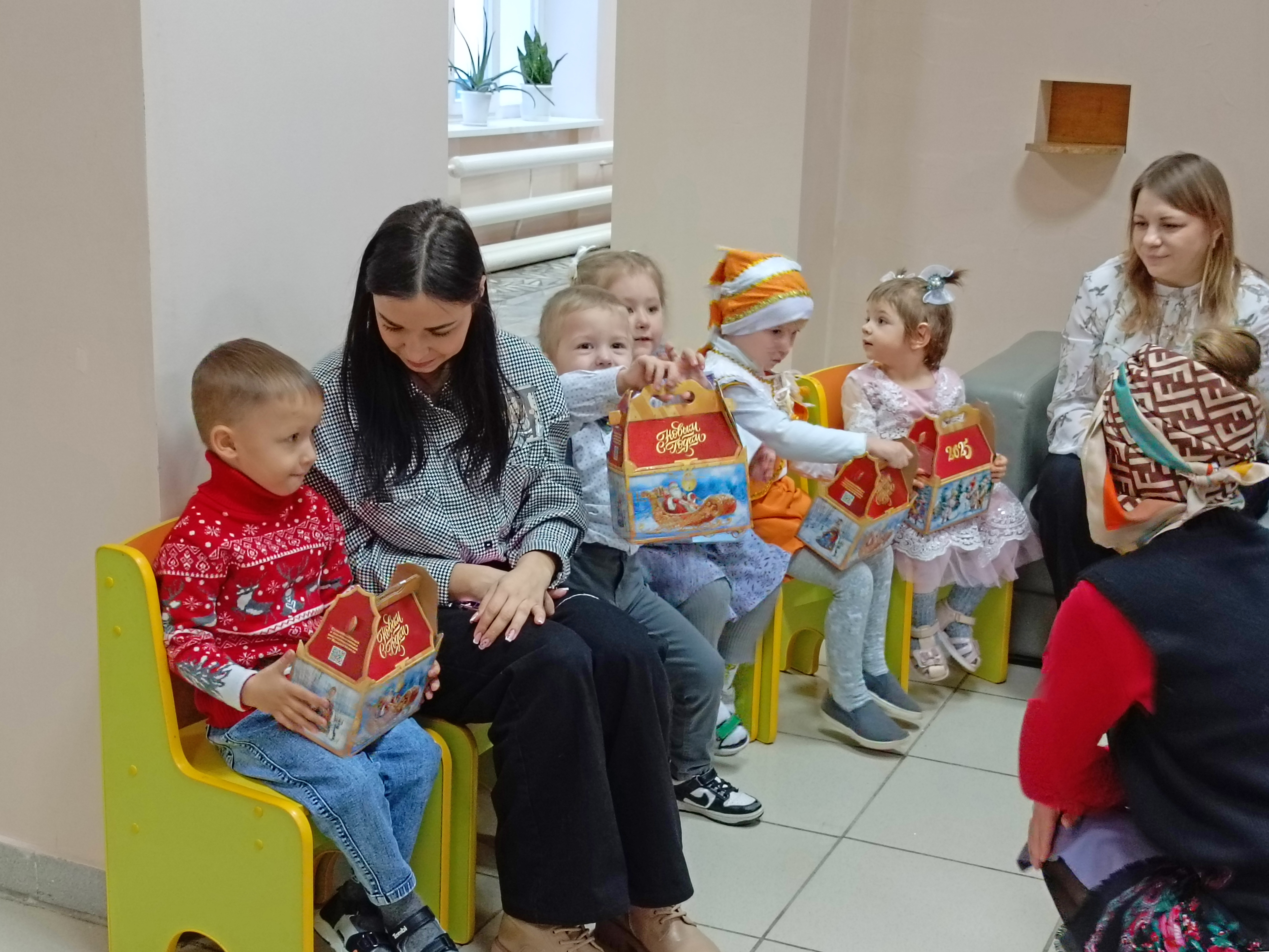 Вручение подарков: волонтеры подготовили и вручили подарки каждому ребенку. Подарки были отобраны с учетом интересов и потребностей каждого ребенка.