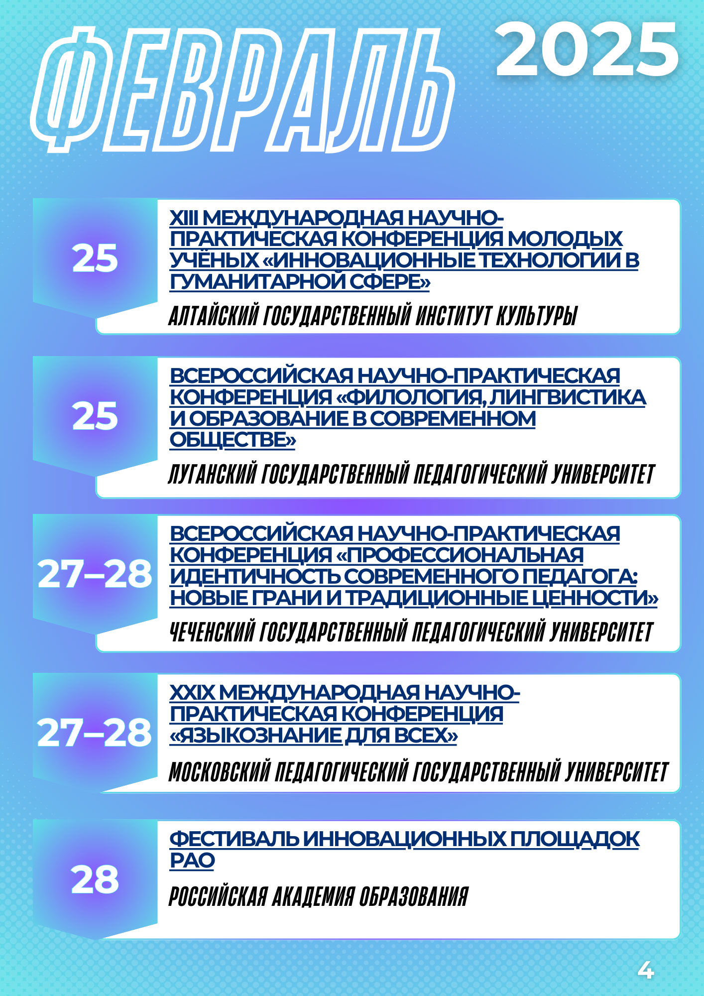 Научный дайджест МГПУ: подборка актуальных мероприятий на январь-февраль 2025 года